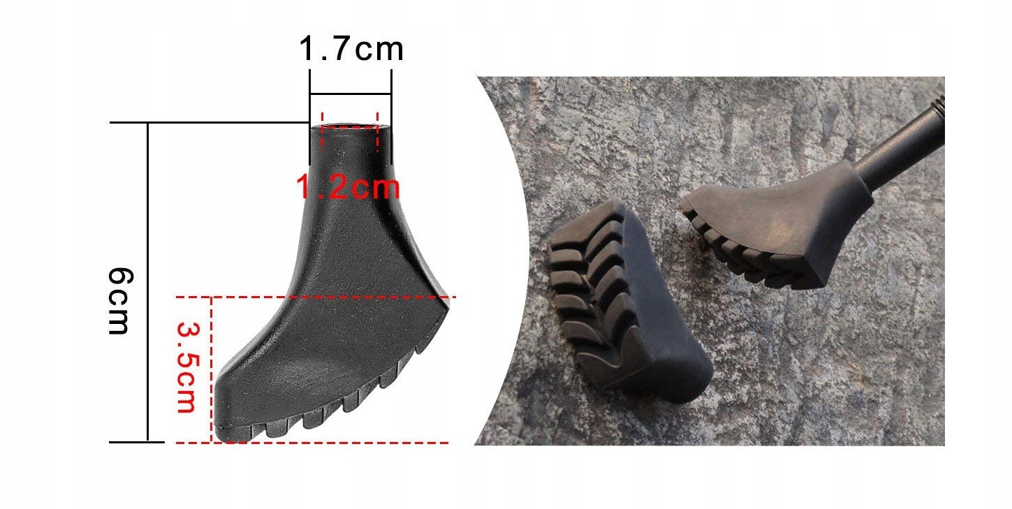 Наконечник для треккинговых палок – необходимая и полезная вещь при занятиях скандинавской ходьбой. Незаменим при походах по различным поверхностям, таким как тротуар, асфальт, бетон, гравий или проселочные дороги с твердым покрытием. Наконечник в форме ботинка идеально подходит для походов по труднопроходимой местности. Такая форма предотвращает застревание палки в земле. Защищает кончик от истирания. Резиновая насадка обладает амортизирующими свойствами и снижает звук постукивания по поверхности. Наконечник имеет профилированное дно, что увеличивает сцепление и устойчивость клюшки на земле. Внутри колпачка имеется круглая металлическая вставка, защищающая его от проколов.