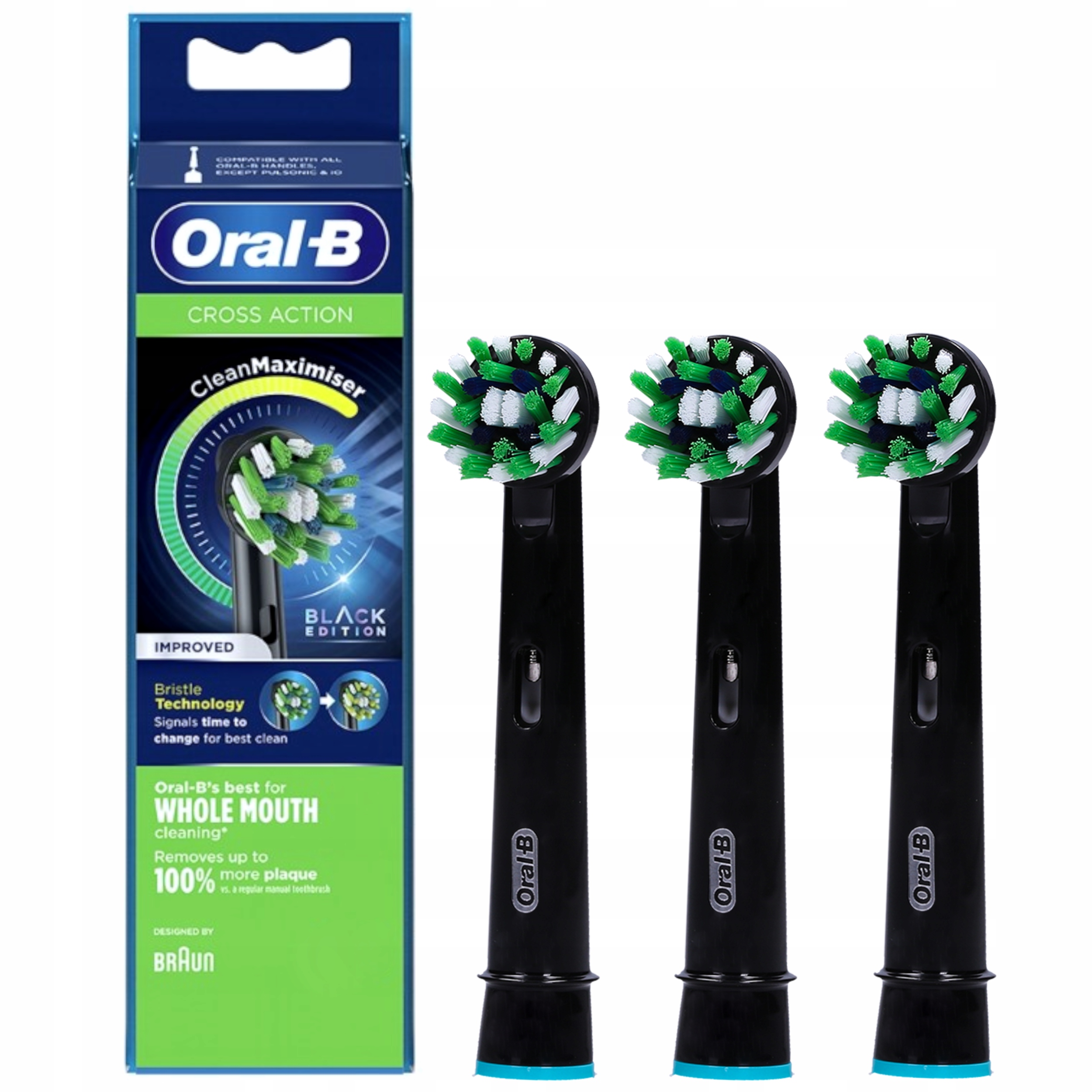 3x ORIGINAL ORAL-B CROSS ACTION ЧЕРНЫЕ НАКОНЕЧНИКИ