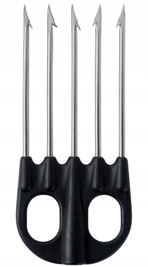SALVIMAR JET 5 INOX — это уникальный пятизубый инструмент из закаленной стали, установленный на прочной, армированной нейлоновой основе. Его конструкция основана на тесном сочетании прочного материала и точной обработки, что обеспечивает надежность и долговечность в любых условиях.