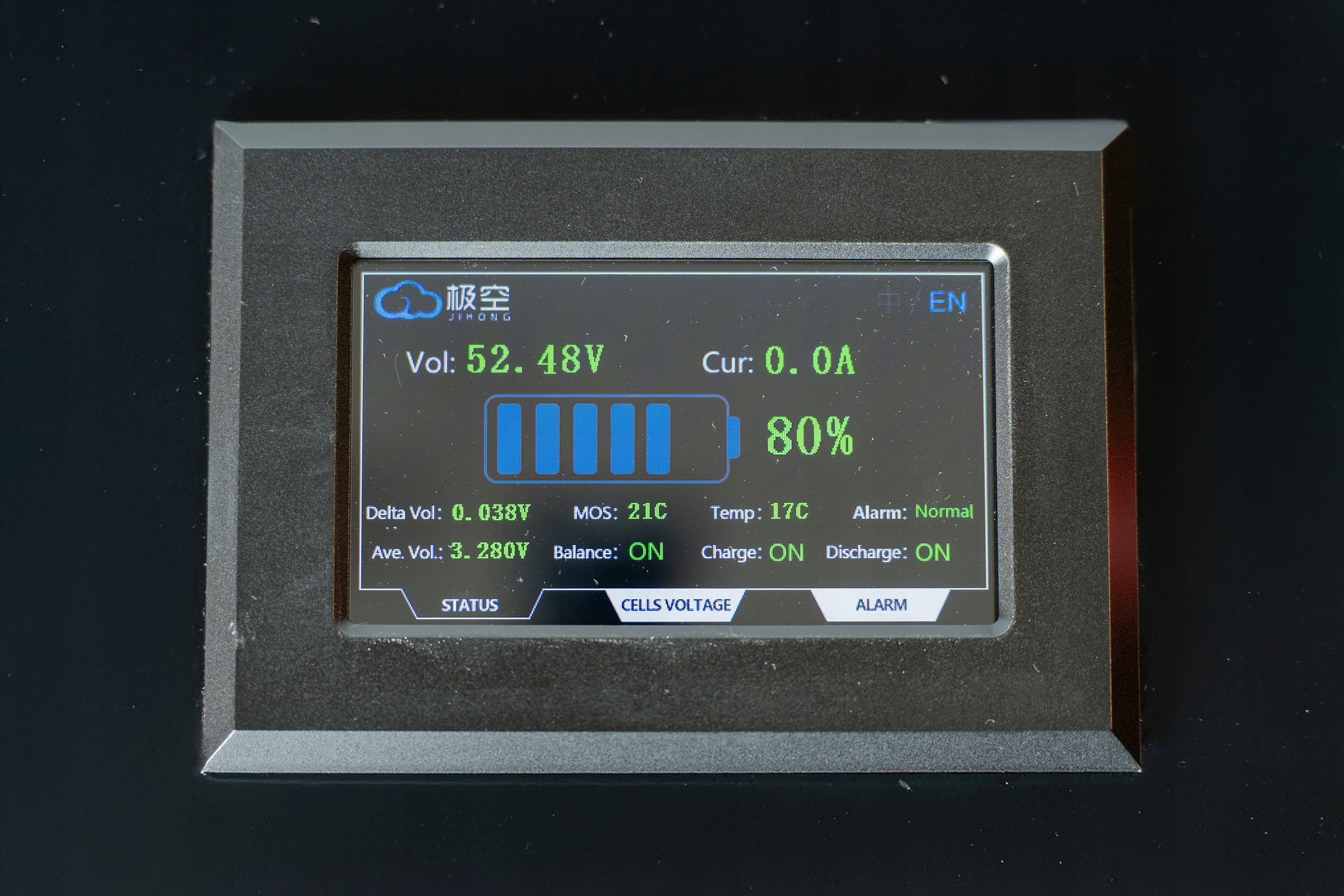 Склад оснащен 16 элементами LiFePO4 с параметрами 3,29В и 304Ач, что обеспечивает высокую емкость, надежность. и длительный срок службы, идеально подходит для хранения возобновляемой энергии.