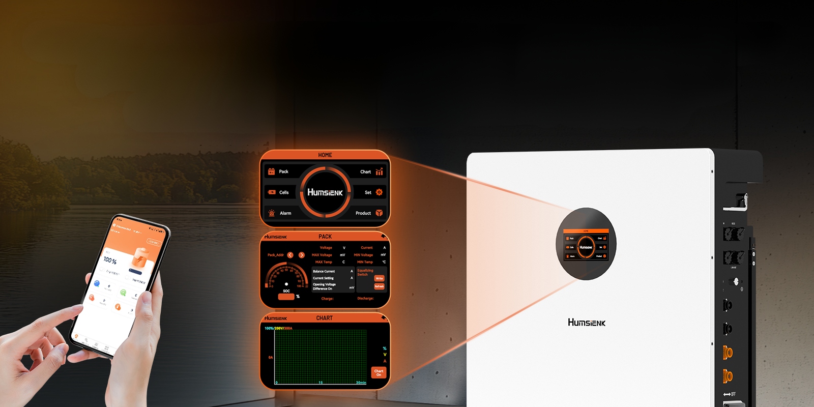 Интуитивно понятный сенсорный ЖК-экран отображает напряжение, ток, уровень заряда (SOC) и систему состояния.