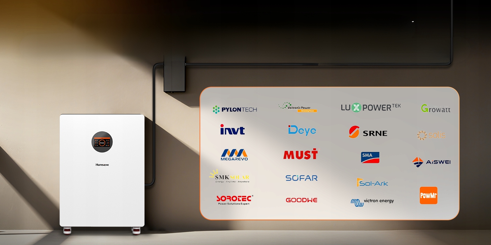 Связь через RS485 и CAN обеспечивает взаимодействие с большинством инверторов 48 В: Victron, Growatt, Deye, Sofarsolar, Voltronic, GoodWe, Mustsolar, Pylo, Luxpower, Sol-Ark, Solis.