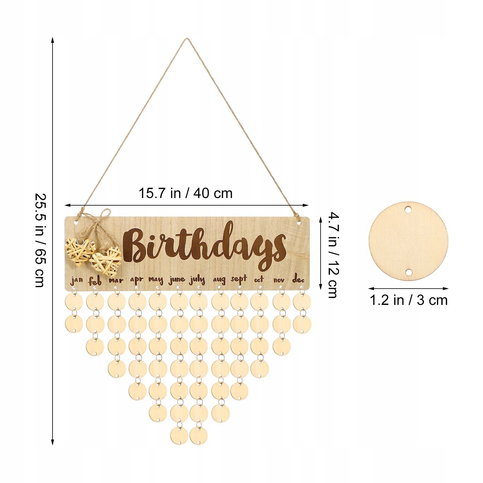 ✅ten Деревянная табличка Calandr оснащена украшением круглых колец. Все, что вам нужно сделать, это написать имя и дату на деревянном диском, а затем в подходящем месяце календаря. Отличное напоминание о день рождения друзей, День матери, День отца и т. Д.
