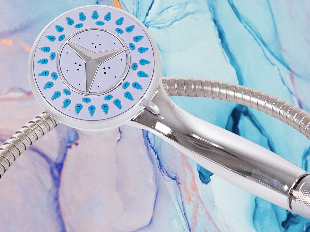 Три -функциональная насадка для душа с резиновыми вкладками и длинная змея, идеально подходит для ванны или душевой кабины.