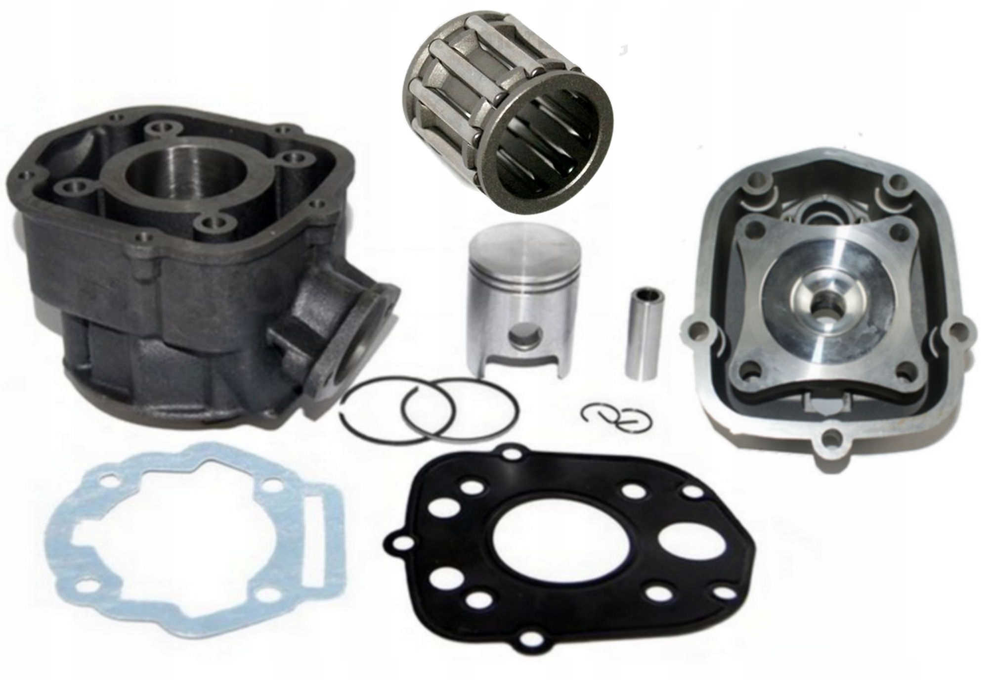 Набор включает в себя все элементы из основной фотографии, среди прочего: чугунный цилиндр, поршневой комплект,