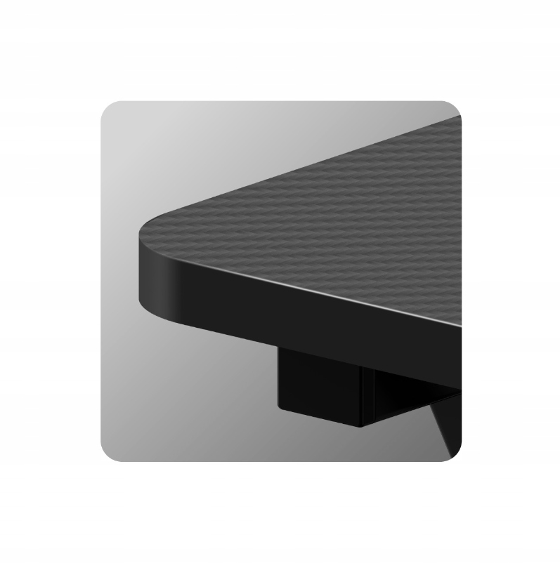 Верх покрыт покрытием, имитирующего углерод, который придает столу современного характера и, прежде всего, обеспечивает сопротивление царапинам и повреждениям.