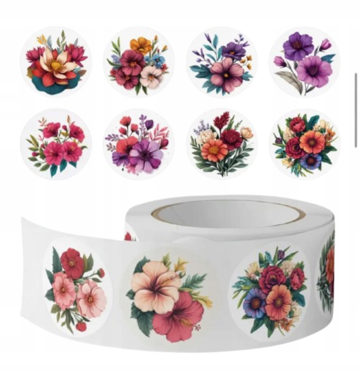 КРУГЛЫЕ ЦВЕТОЧНЫЕ НАКЛЕЙКИ В РУЛОНЕ, 500 ШТ.