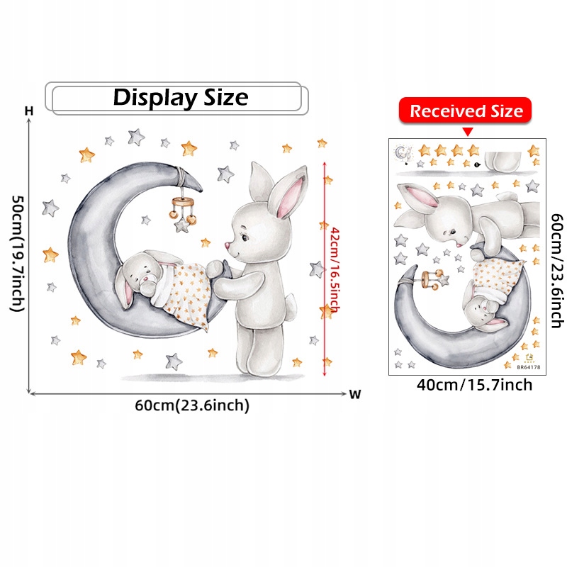 НАЛІЙКИ НА СТІНИ кролик місяць СТІНИ ДИТЯЧА КІМНАТА КОЛЬОРОВИЙ Заєць