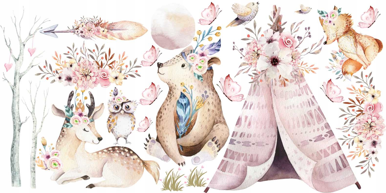 НАЛІЙКИ НА СТІНИ ОЛЕНЬ ТВАРИНА БОХО РОЖЕВИЙ МАКС