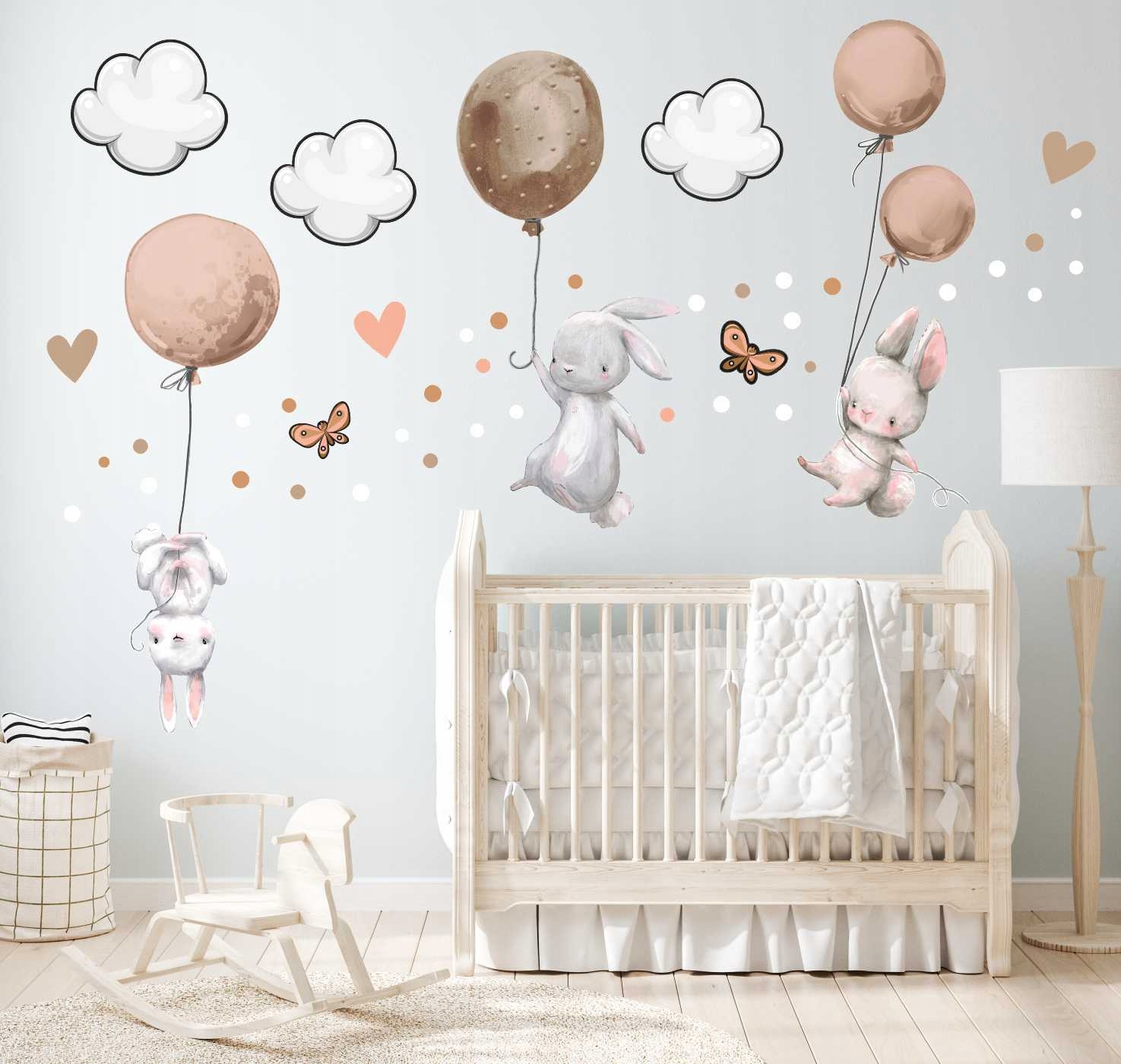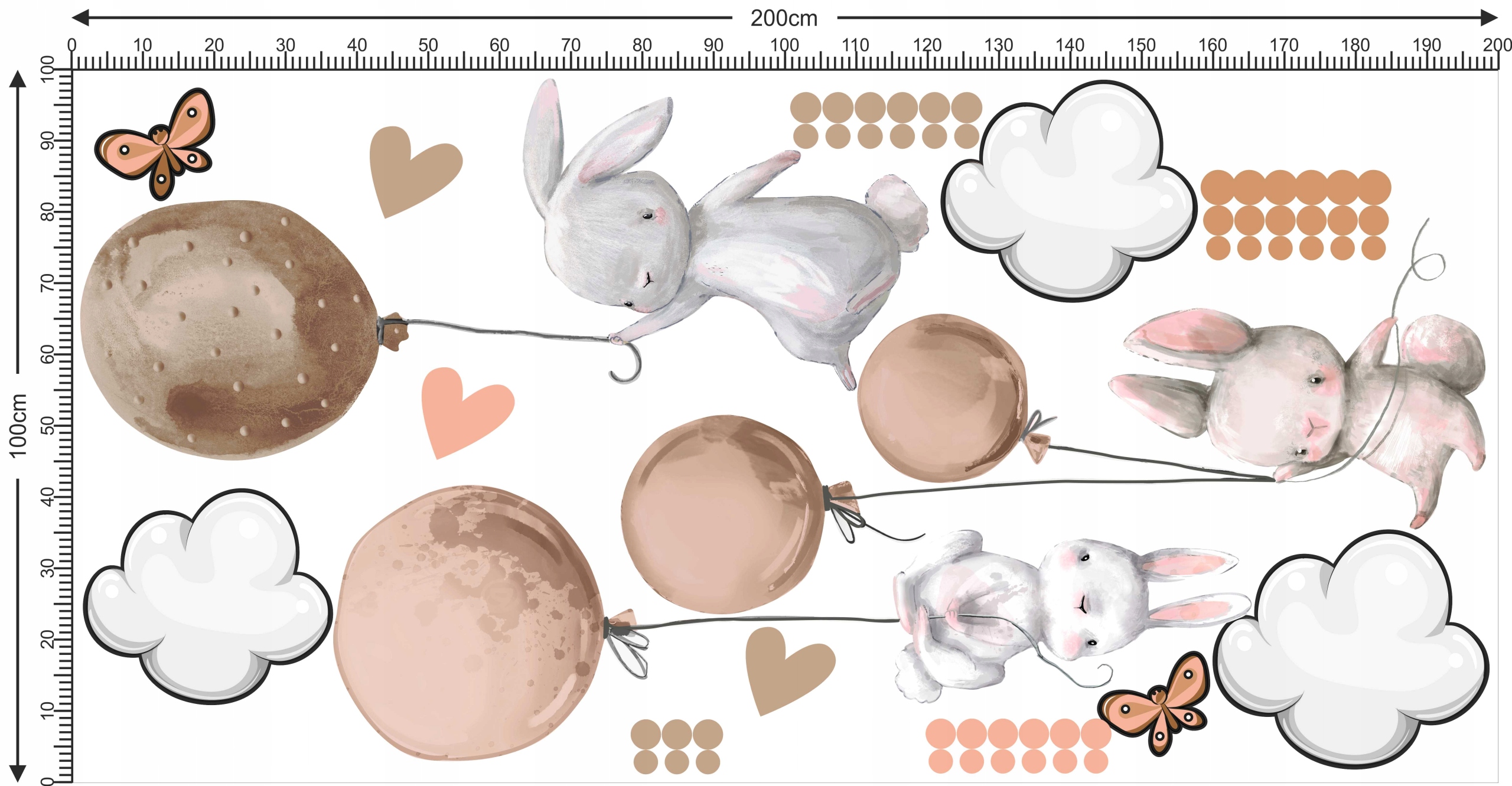 НАЛІЙКИ НА СТІНУ З ПОВІТРЯНИМИ КУЛЯМИ Кролики 100х200см KR10