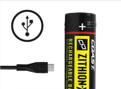 - в комплект входят: фонарик, аккумулятор COAST ZITHION-X™ и кабель для зарядки.