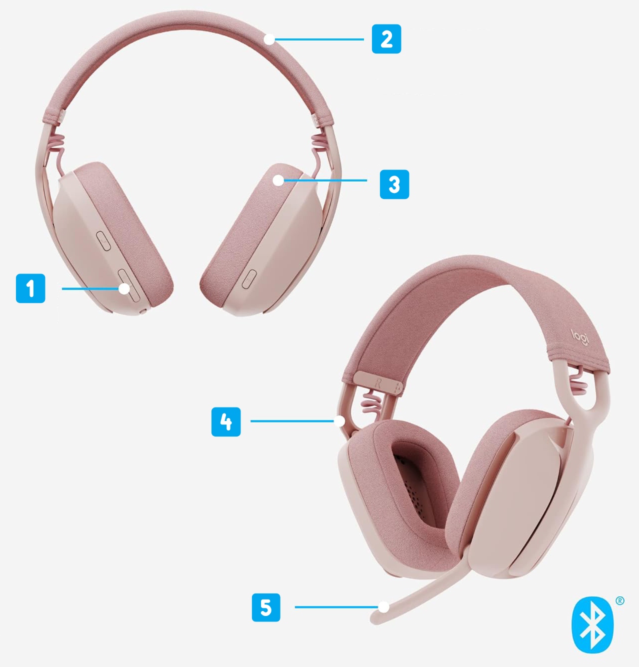 БЕСПРОВОДНЫЕ НАКЛАДНЫЕ НАУШНИКИ LOGITECH ZONE VIBE 100 С МИКРОФОНОМ РОЗОВЫЕ
