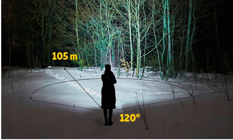 ✅Многофункциональная модель с яркостью до 1020 лм и дальностью действия 104 м