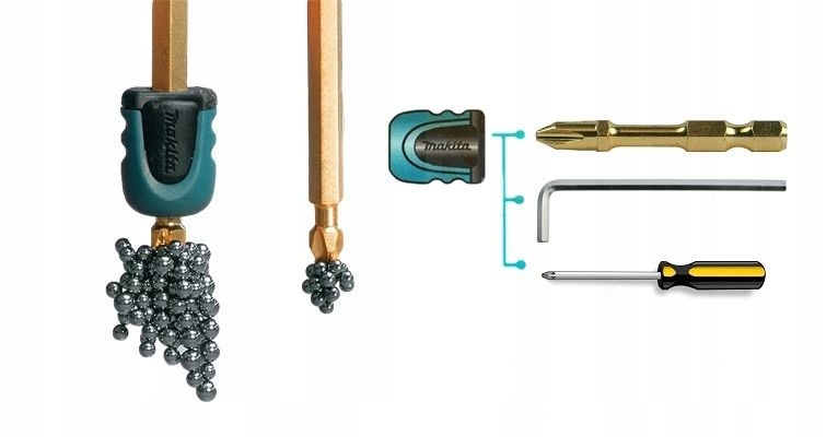 Благодаря адаптеру Makita сила магнитного притяжения в 17 раз выше, чем в случае со стандартными магнитными битами.