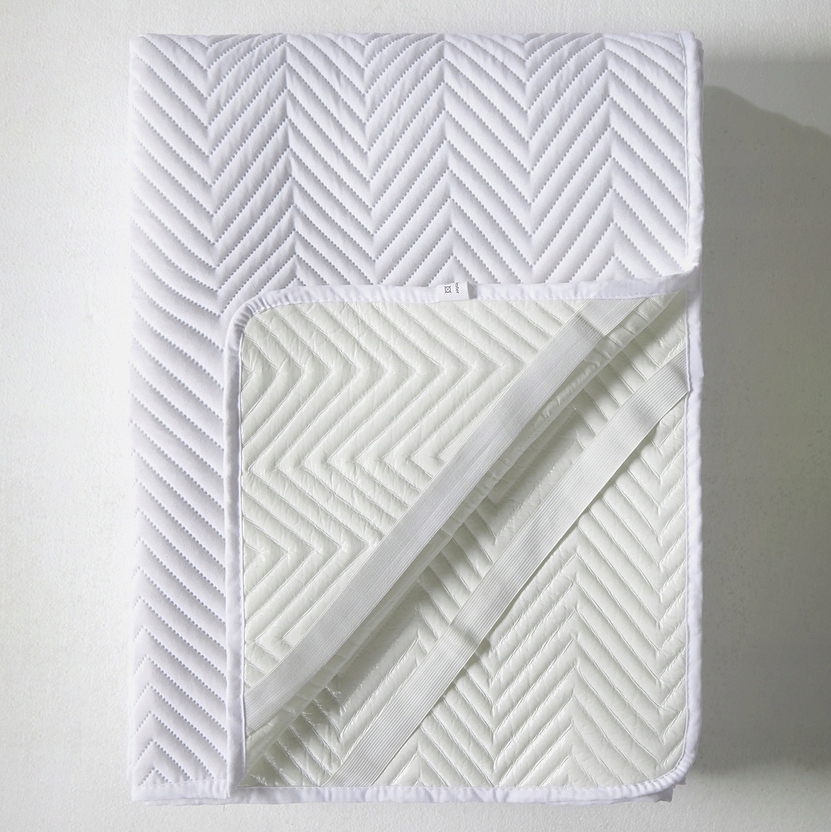Защитный чехол оснащен прочными гибкими резиновыми лентами по углам, которые надежно удерживают его на месте. Подходит для большинства матрасов стандартной высоты.