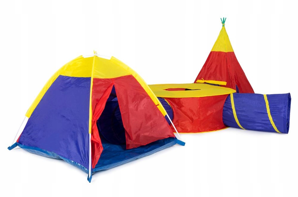 Набор палаток изготовлен из прочного материала, который позволяет использовать игровой площадки в саду и дома. Игручный пол водонепроницаемый. Комплект включает в себя дом, палатка Tipi, круглый центр, 4 туннеля. Каждый из элементов может использоваться отдельно и свободно настроен. У палатки и дома есть пластиковая рама, которая легко сложена. Круглый центр и туннели самостоятельно.
