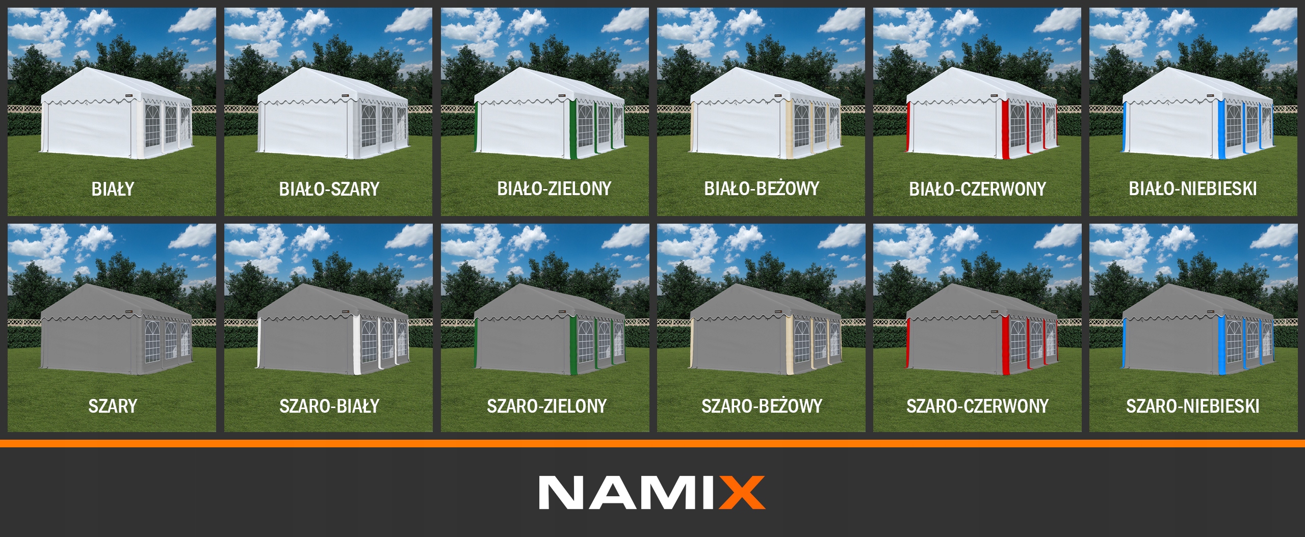 шириной: 3м, 4м, 5м, 6м и 8м (кроме того, палатки можно соединить вместе по длинной стороне, что создает безграничные возможности)