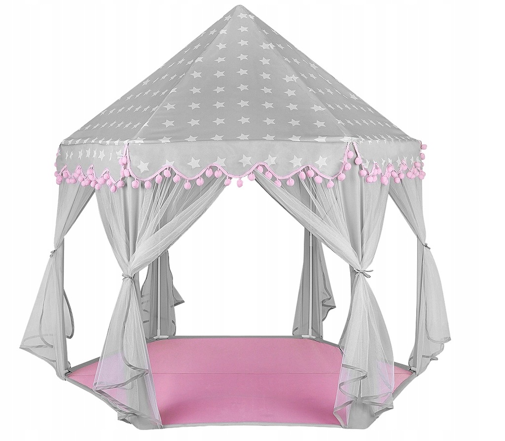 Палатка для детей – отличный способ творчески и творчески развлечься как дома, так и на природе. Он стимулирует воображение и позволяет весело провести время в одиночестве или в большой компании, без возрастных ограничений. Красивая палатка в виде складного шестиугольного дворца понравится каждой маленькой принцессе. Красивая палатка с навесом найдет свое место в комнате, на террасе или в саду. Палатка очень большая, поэтому в ней могут одновременно разместиться несколько детей.