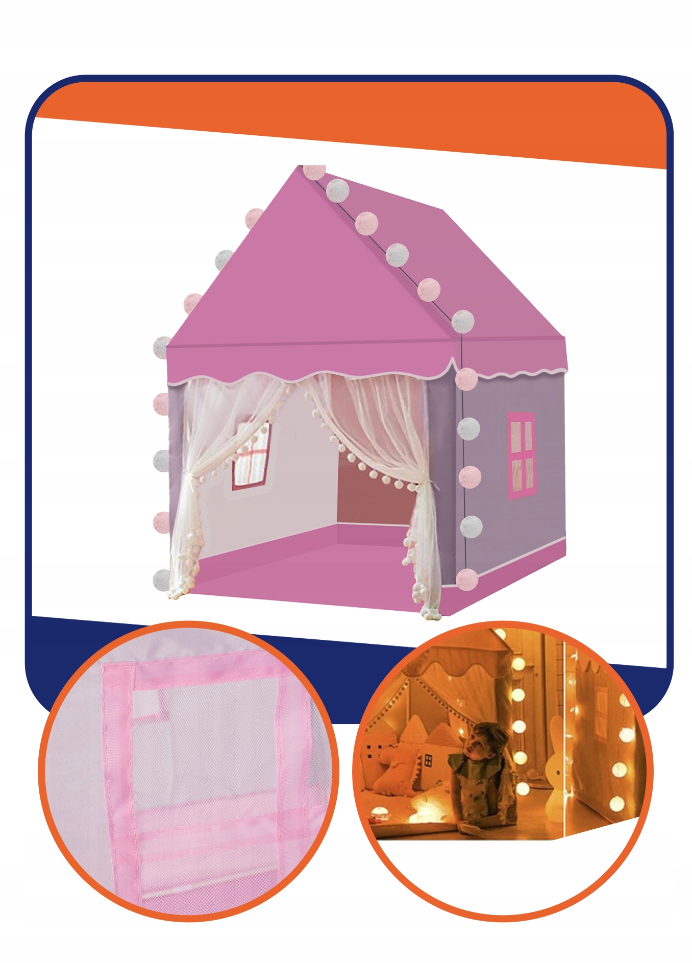 ➡ Детский дом имеет 2 окна из маленькой сетки и удобный вход. вы можете спрятаться со своими любимыми игрушками и позволить своей фантазии бежать. На одном кабеле длиной 3 м с двумя цветами: 10 кусочков белых шаров и 10 розовых шариков. Теплый цвет света светит.