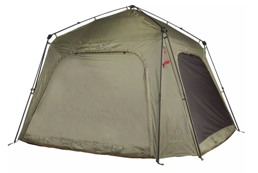 JRC Extreme TX2 Gazebo Basecamp — высокая палатка, предназначенная для приготовления еды. Он имеет большую входную дверь и окна, обеспечивающие отличную циркуляцию воздуха внутри. Изготовлен из толстого водонепроницаемого материала.