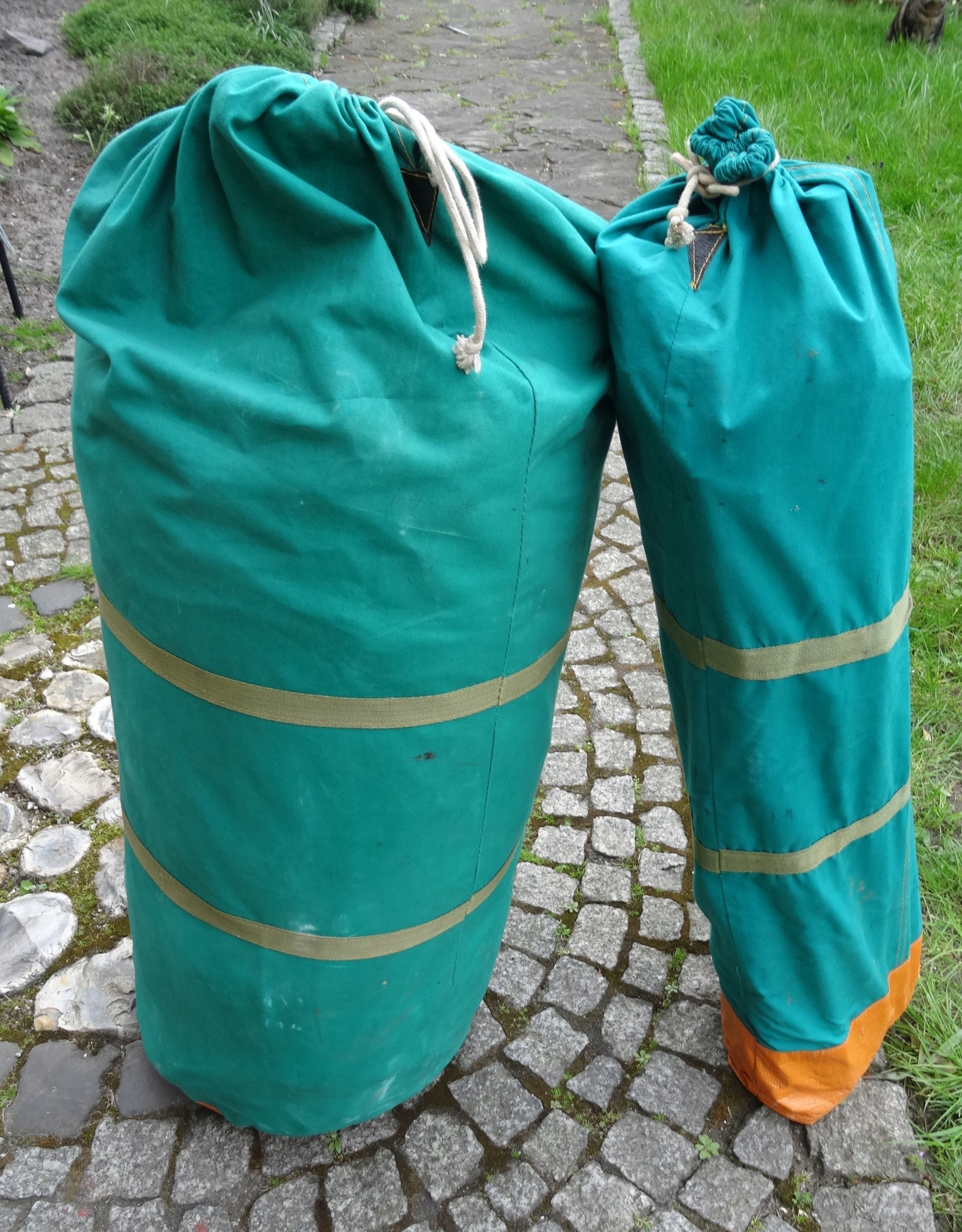 Палатка LEGIONOWO HEL большая, 4-х местная. Палатка была установлена исключительно в иллюстративных целях, без развешивания спальни и натягивания тента. Палатка упакована в две сумки.