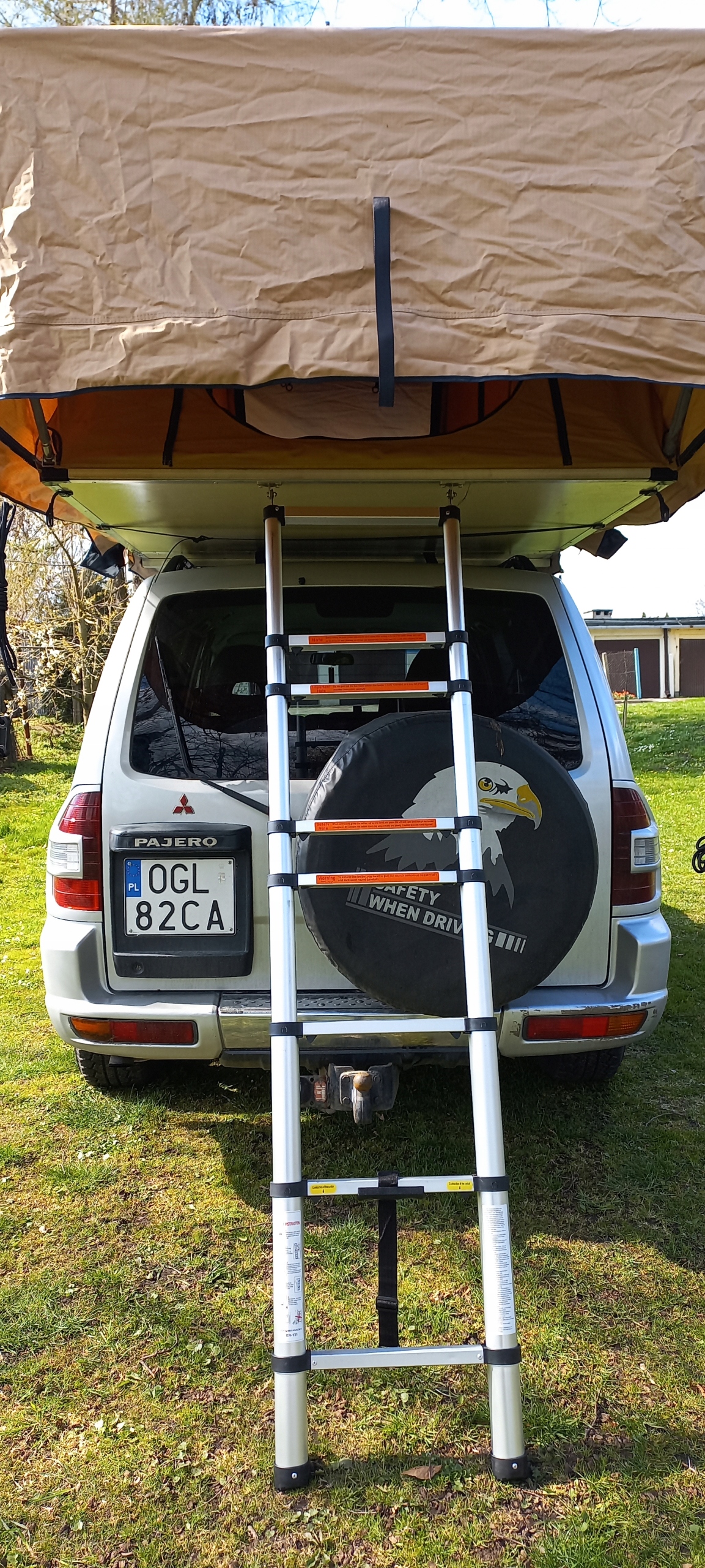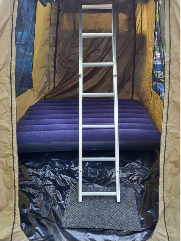 Тент песочного цвета с тентом и навесом складной комплект лестницы.