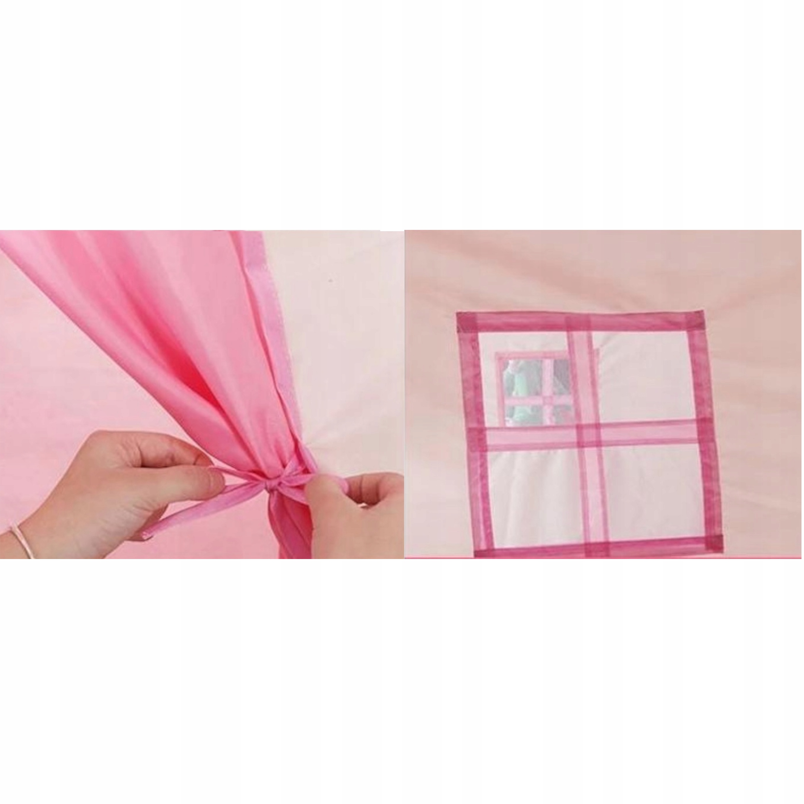 Палатка в форме дома имеет слегка коническую крышу со свисающими розовыми цветами, которые делают ее похожей на дом. Стены украшены сетчатыми окнами, которые также обеспечивают приток воздуха. Вход можно прикрепить веревкой, чтобы он оставался открытым. Кроме того, в палатке есть пол, благодаря которому ваш ребенок не испачкается во время игры.