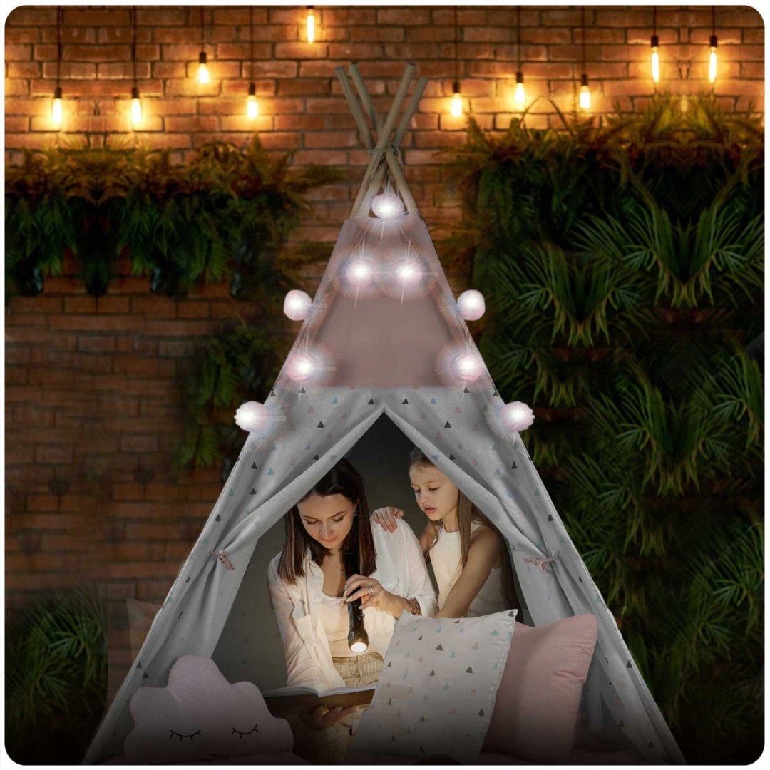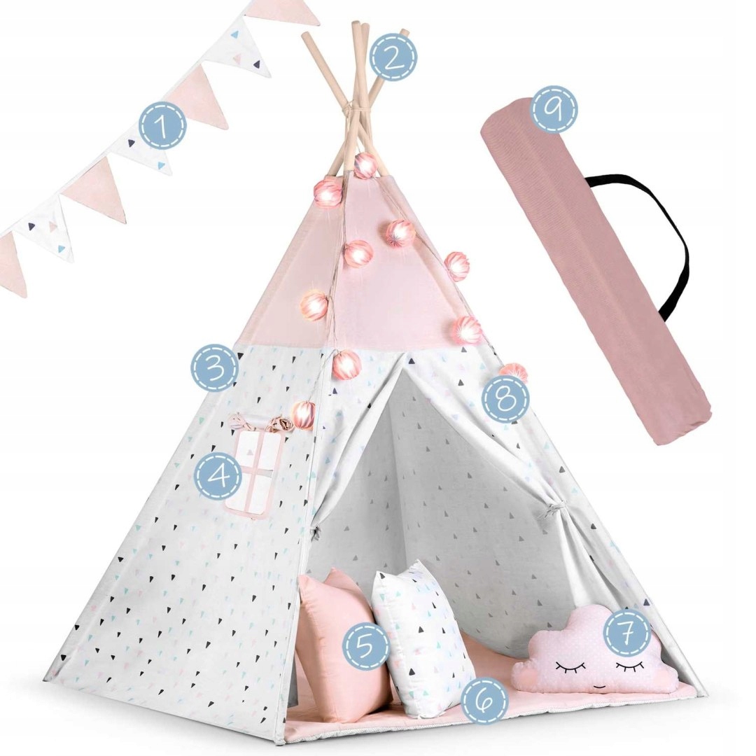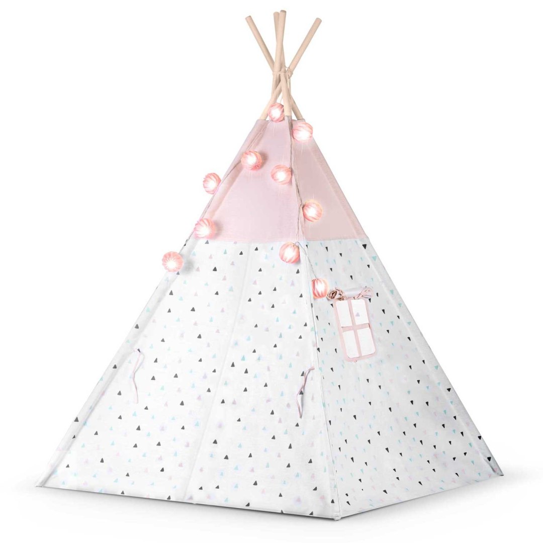 ДЕТСКАЯ ПАЛАТКА ТИПИ С ГИРЛЯНДОЙ И ОГНЕВАМИ НУКИДО - РОЗОВЫЙ