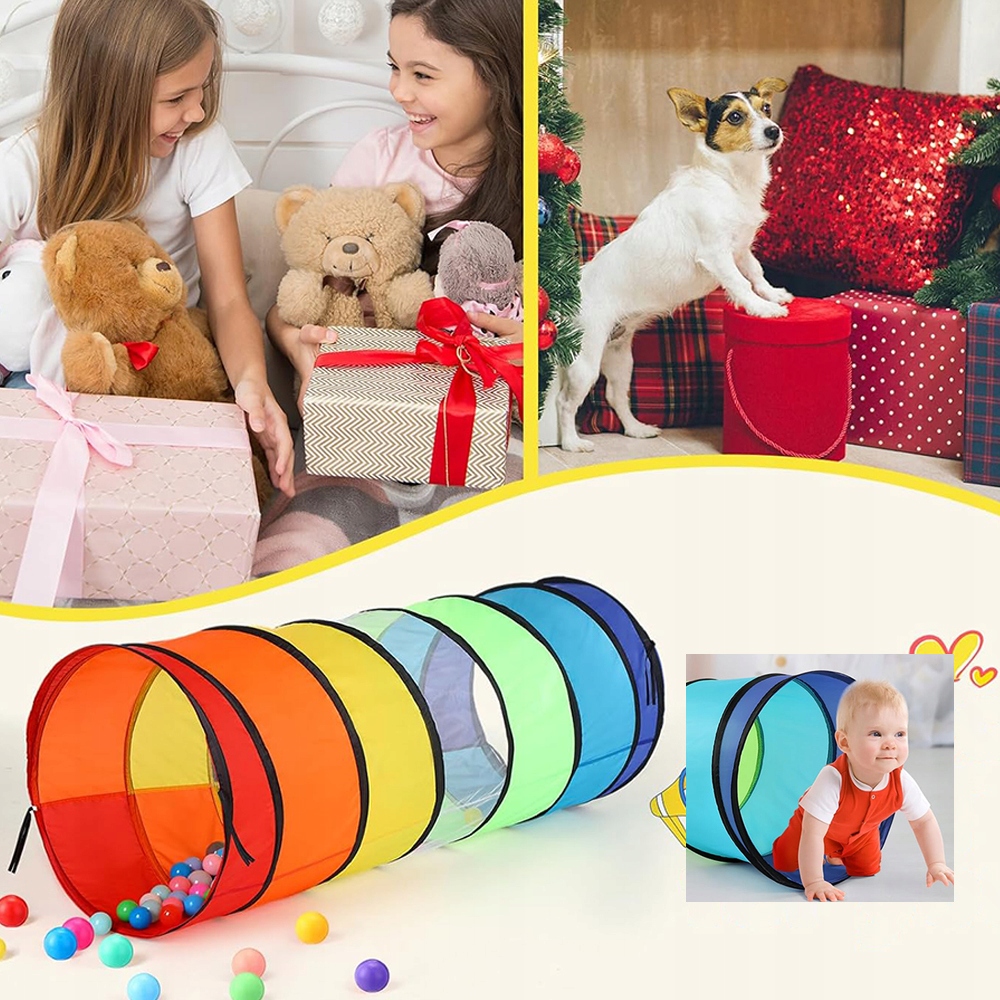 ТУННЕЛЬНАЯ ДЕТСКАЯ ПАЛАТКА ДЛЯ ПОЛЗАНИЯ 175СМ РАДУГА, СКЛАДНАЯ, БЕЗОПАСНАЯ