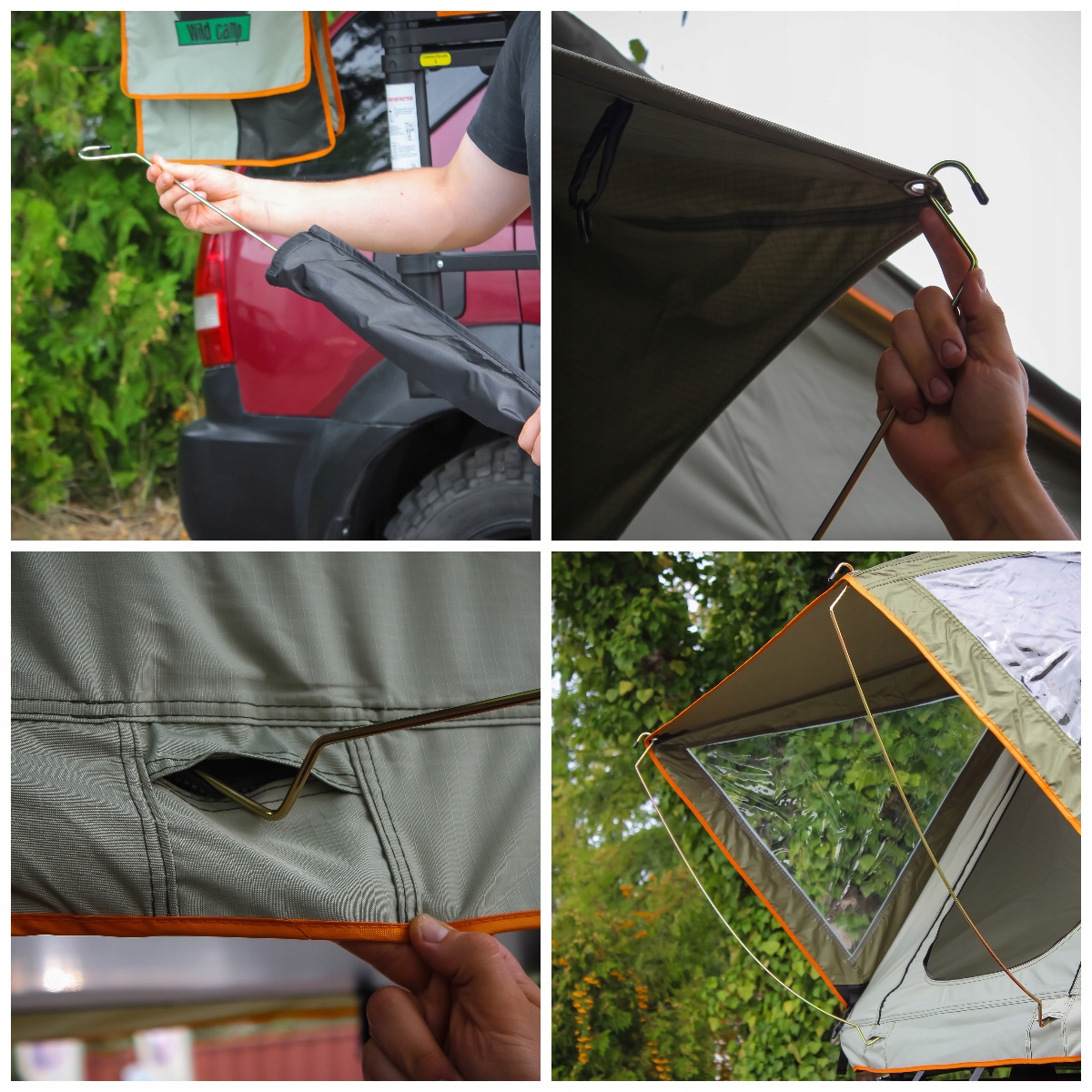 Изготовлены из очень гибкого металла. Используются для поддержки и затягивания внешних ставней палатки.