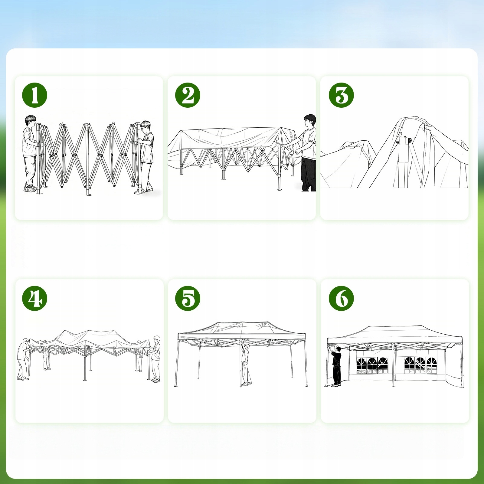 | 4-уровневая регулировка высоты (2,7-3 м) | Водонепроницаемая и УФ-50+ ткань Оксфорд 420D | Быстрая настройка | Идеально подходит для свадеб, вечеринок, рынков | 6X3X3M|