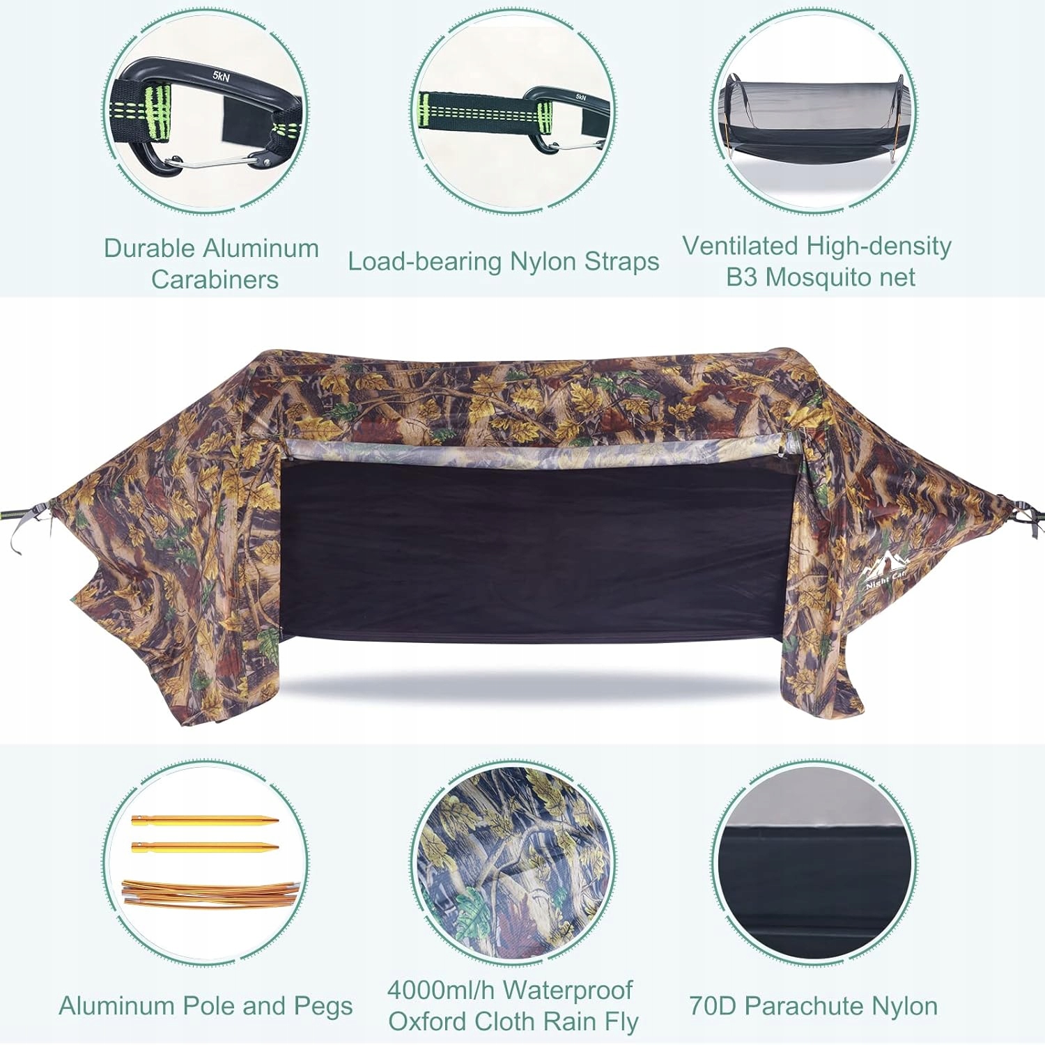 Наша палатка гамака является идеальным решением для любителей приключений на открытом воздухе. Благодаря многофункциональному дизайну, его можно использовать в качестве гамака, земли или висящего палатки, адаптируя к вашим потребностям и обеспечивая максимальный комфорт.