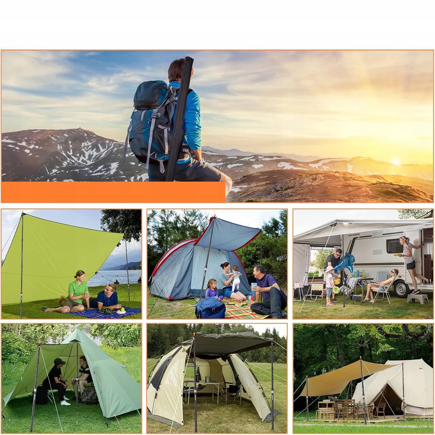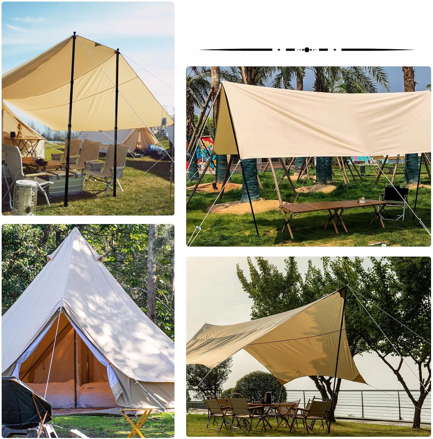 Палаточные бары, кемпинговые столбы, солнцезащитный крем, телескопические паруса