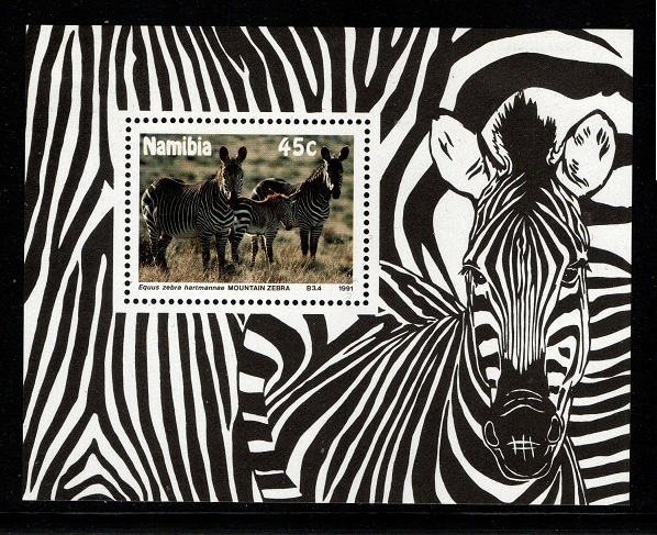 Намибия / Мини-лист 39 (Фауна - горная зебра) 1991 г. / чистый