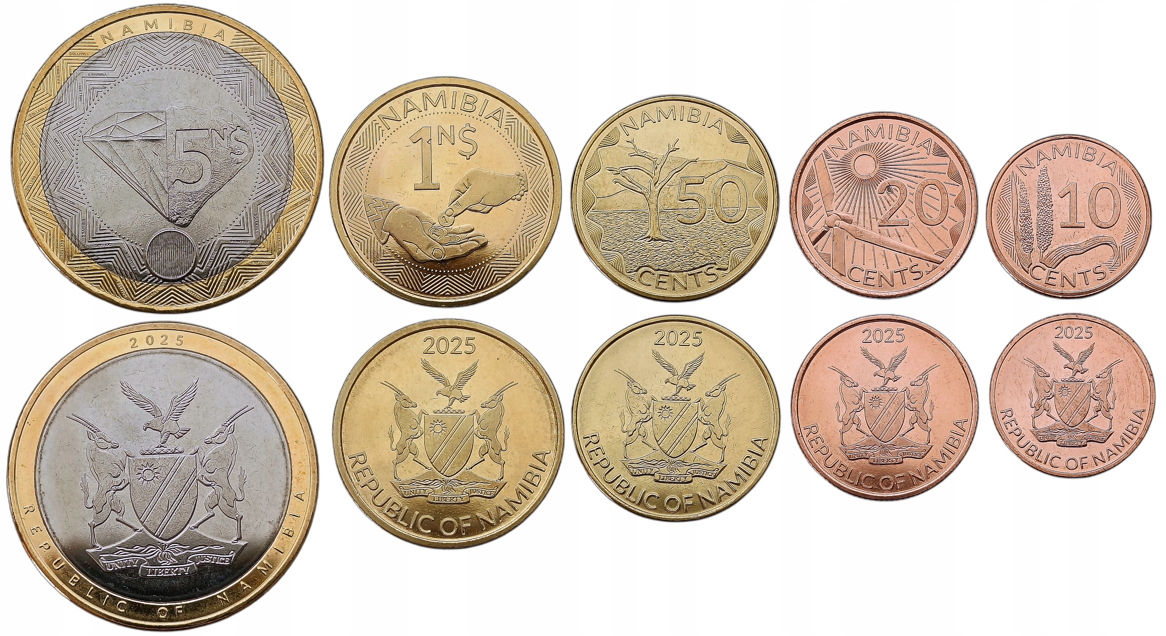 НАМІБІЯ НАБІР З 5 МОНЕТ 10 CENTS - 5 DOLLARS 2025 UNC