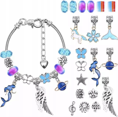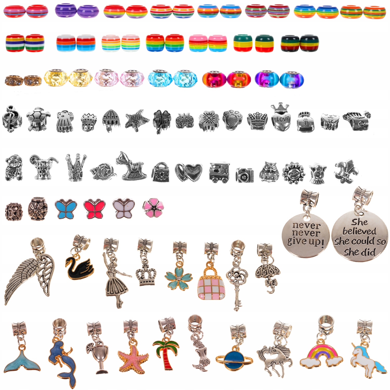 - БОЛЬШОЙ НАБОР -набор из 107 элементов позволит вашему ребенку создавать сказочно красочные браслеты и ожерелья различной формы и с разными мотивами. В комплект входит 5 колье и 5 браслетов с бусинами и подвесками.