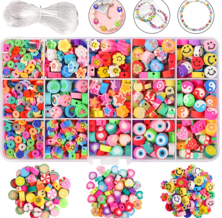 - Бусины в различных формах, такие как цветы, сердца, смайлики, животные, фрукты и многие другие LI> Гибкая строка, идеально подходит для резьбовых шариков и создания ювелирных изделий. Вес 175gr