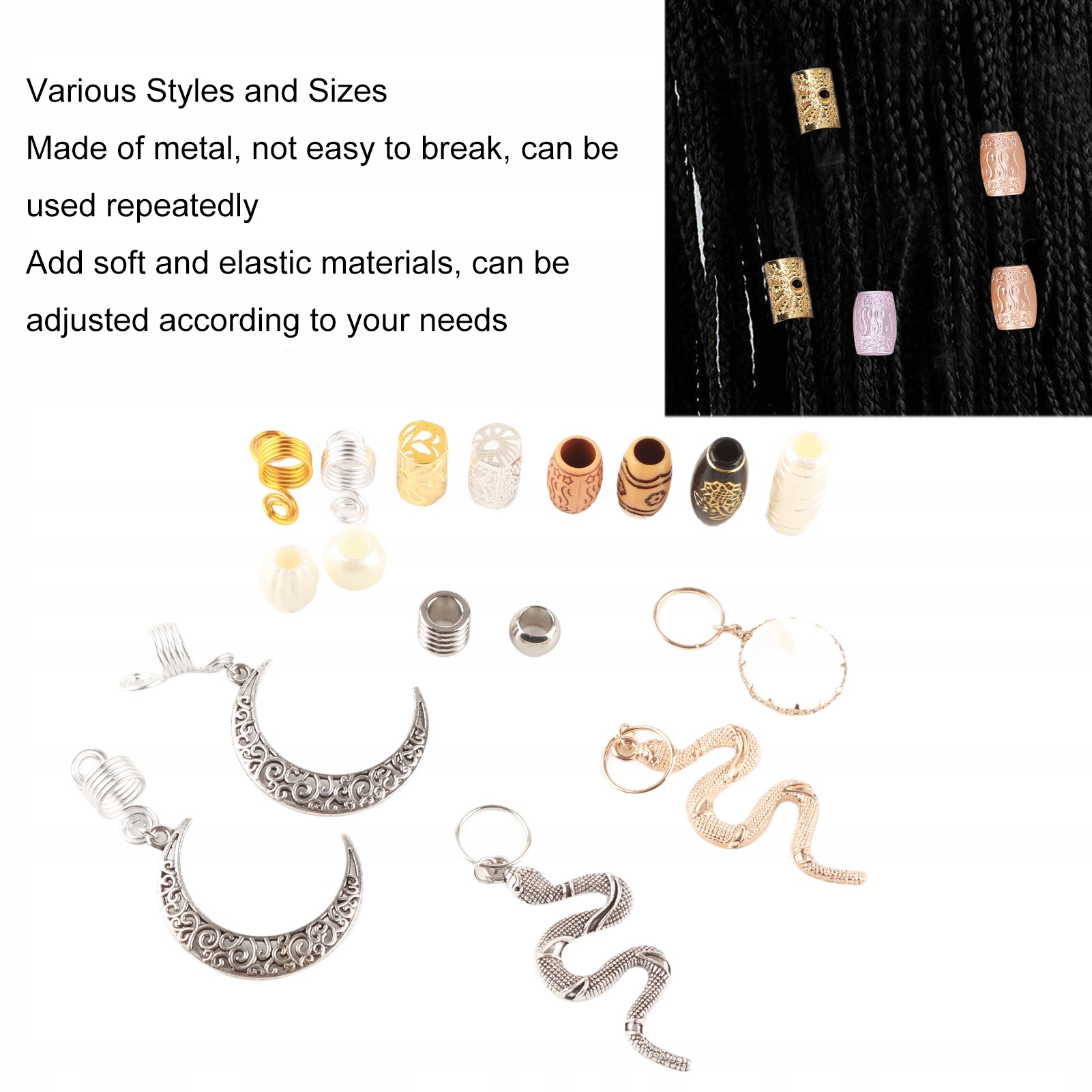 1. ЛЕГКО ИСПОЛЬЗОВАТЬ: Эти аксессуары для плетения очень просты в использовании: просто заплетите волосы, а затем раскрутите бусины, вы можете это сделать, никаких других вспомогательных инструментов не требуется, и это не повредит вашим волосам.
