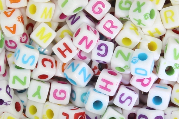 Бусины акриловые Кубики Буквы 6х6мм