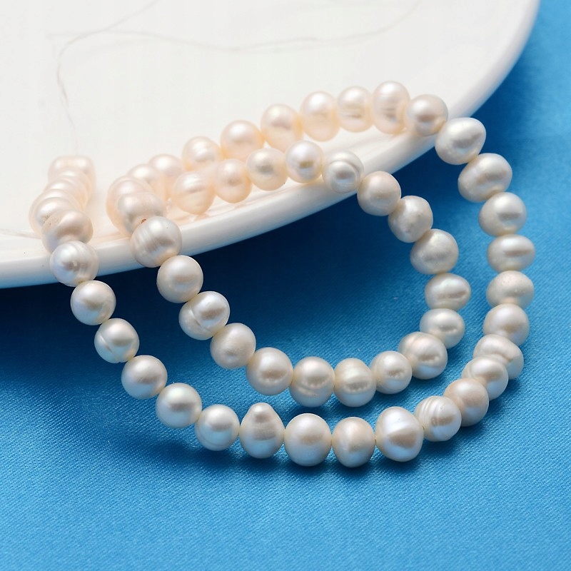 Намистини з натуральних прісноводних перлів, клас А, кремові 5-6 мм, 60 шт./32 см./нічого