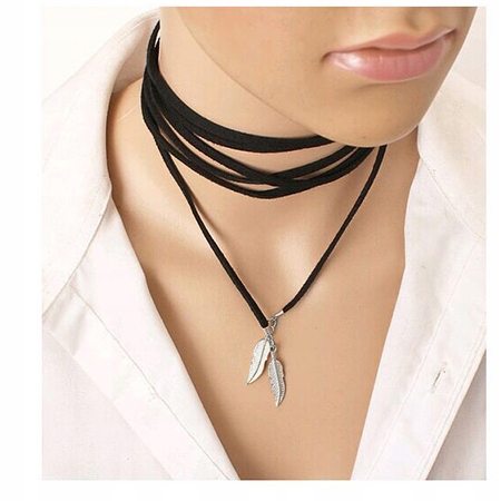 Naszyjnik Choker Czarny Zamsz Rzemień Rzemyk 200cm