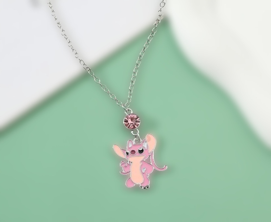 Детское колье-цепочка Stitch Lilo & Stitch с розовым фианитом