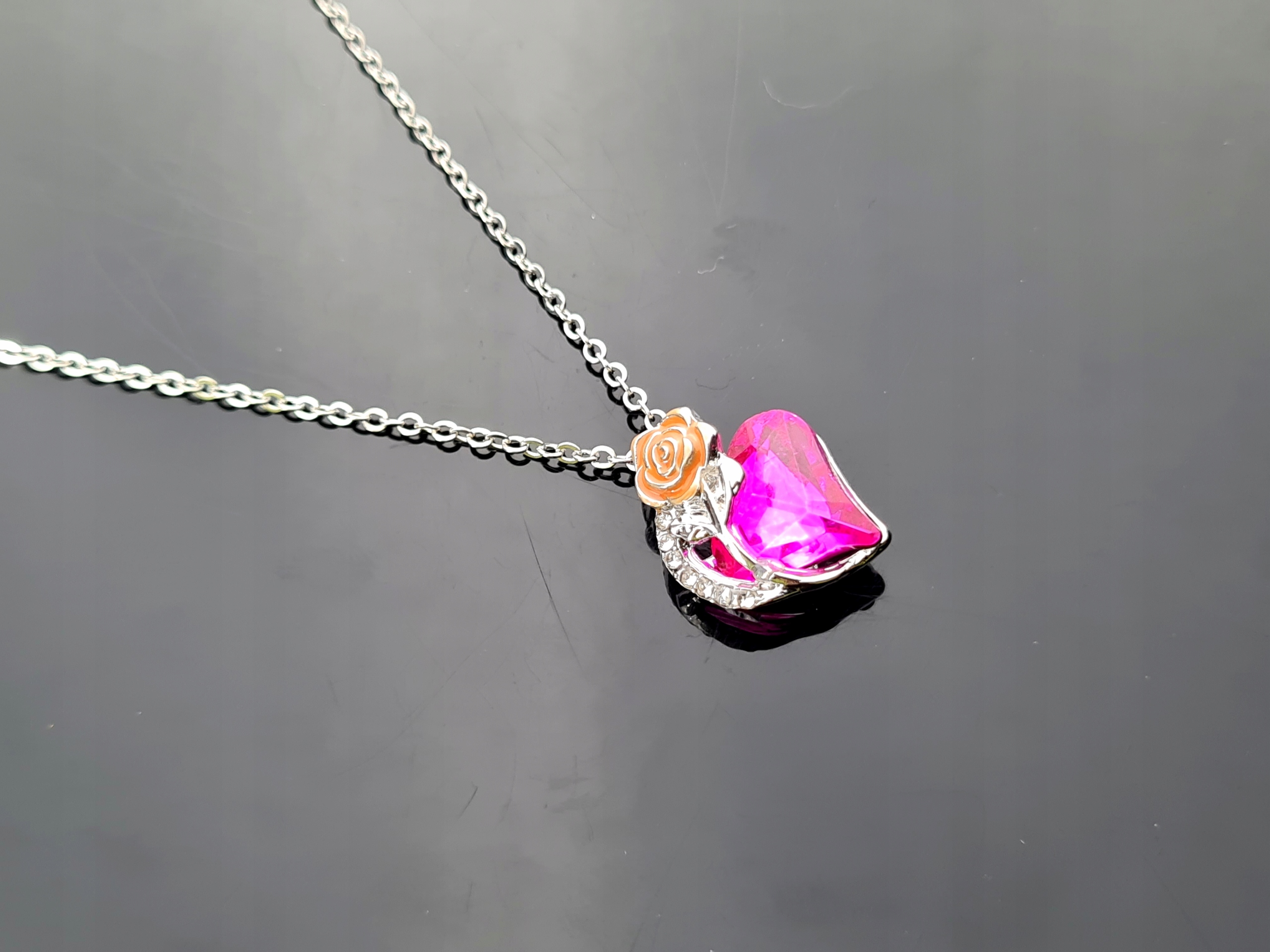 Ожерелье для девочек розовое сердце цепь циркона сердца