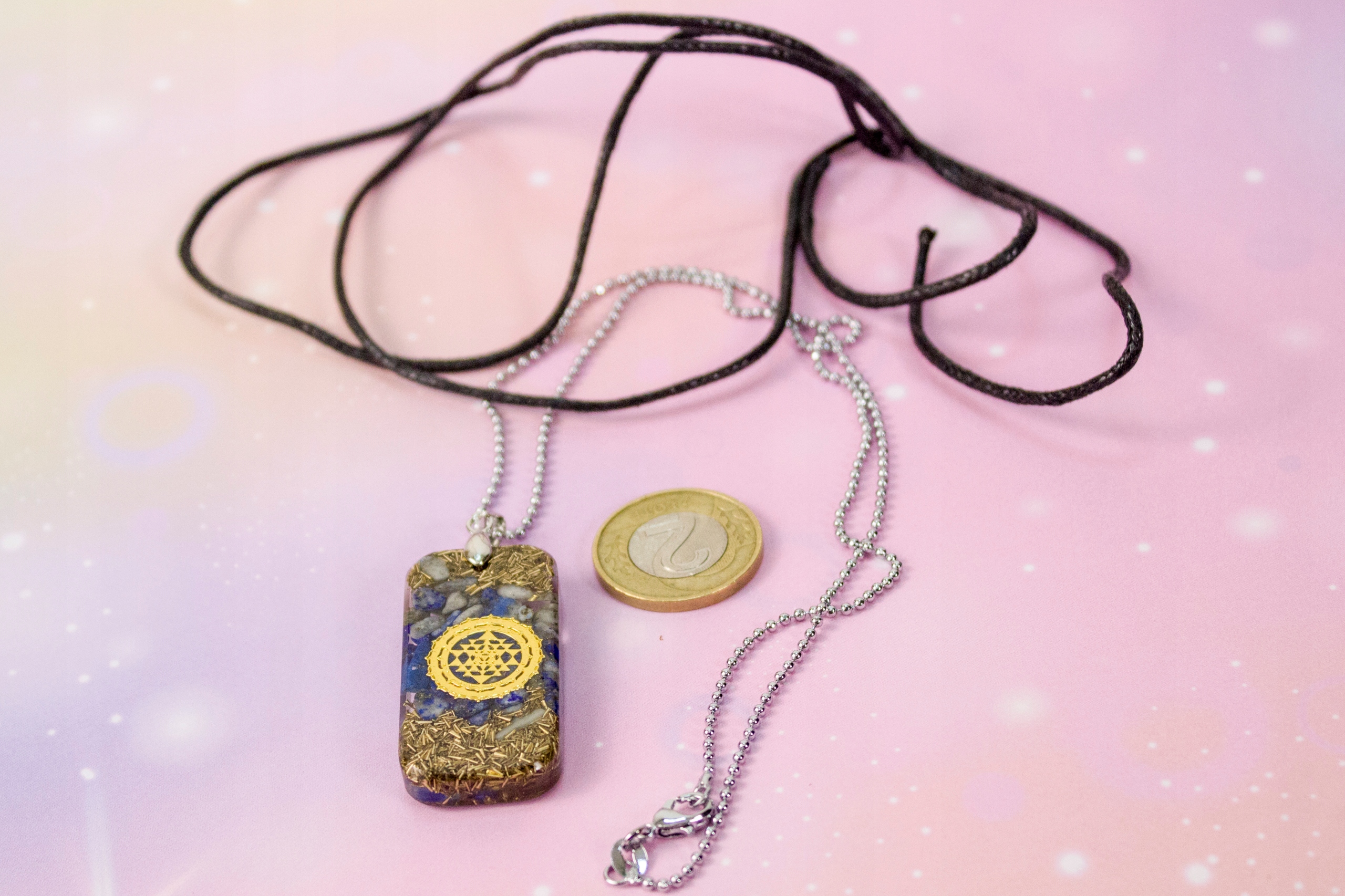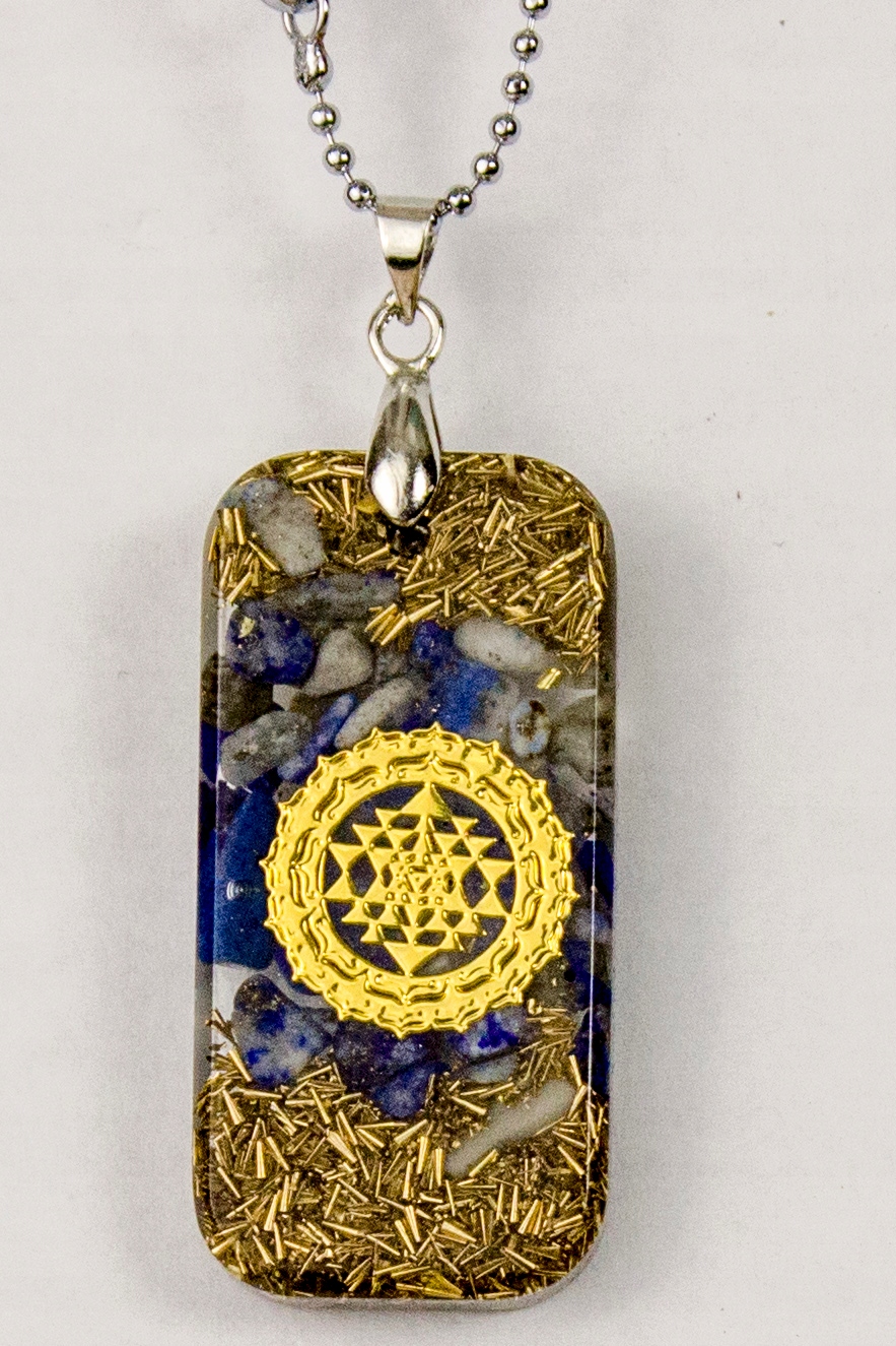 КРАСИВЫЙ АМУЛЕТ ОЖЕРЕЛЬЕ С ЛАЗУРИТОМ И МЕДЬЮ ШРИ ЯНТРА ТАЛИСМАН