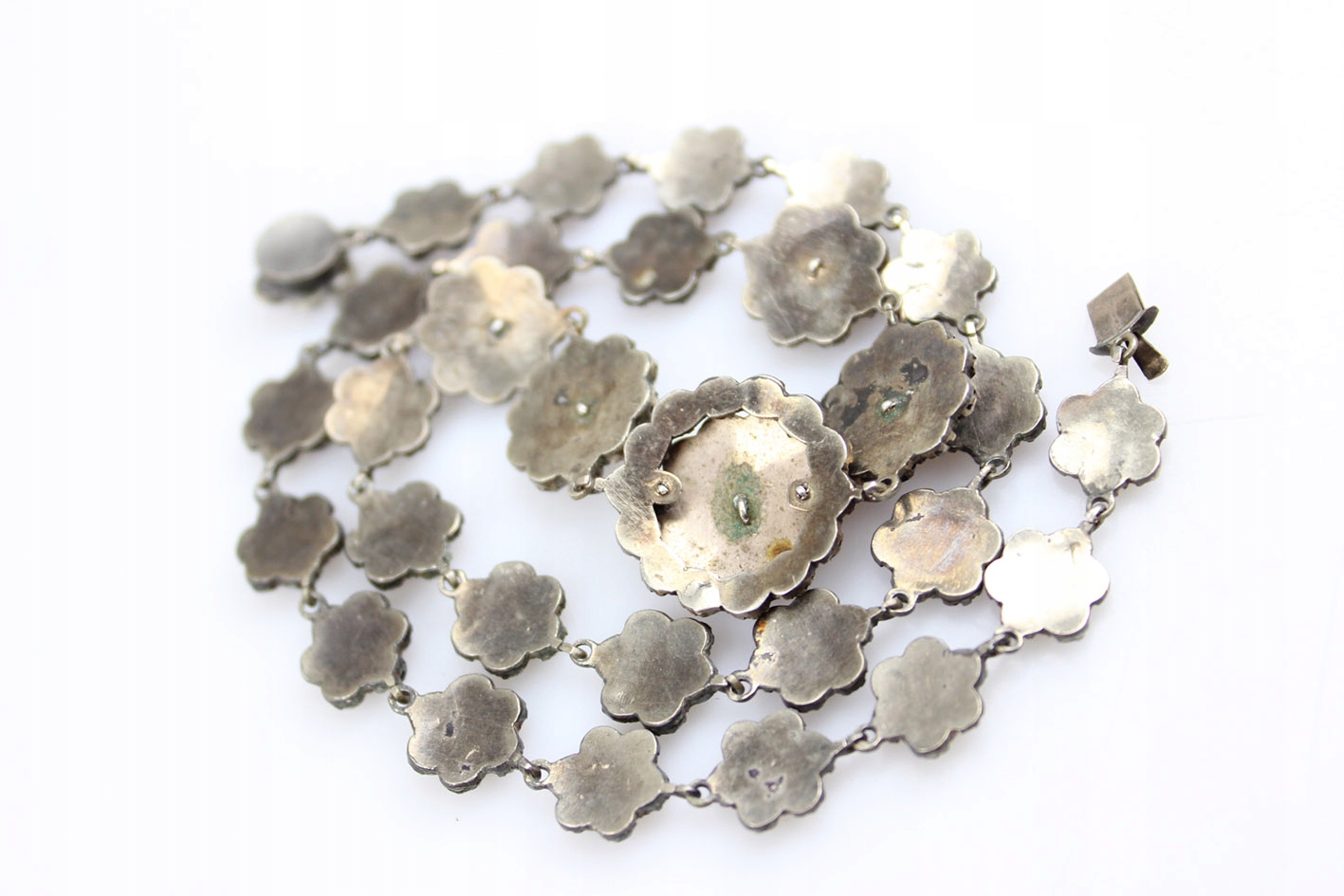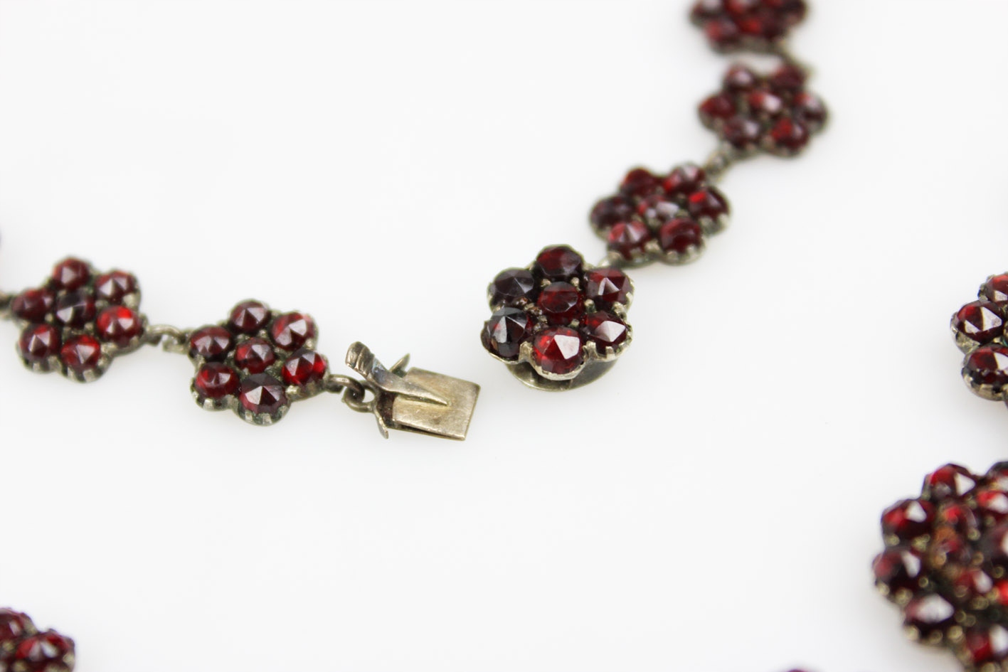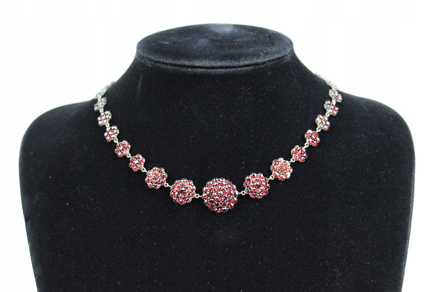 Красивое колье «принцесса», украшенное гранатами. Предмет из Германии или Австрии, изготовленный во второй половине 19 века. Основание из посеребренного томпака с выдвижной застежкой. Натуральные камни огранки «роза». Все в очень хорошем состоянии. Размеры: