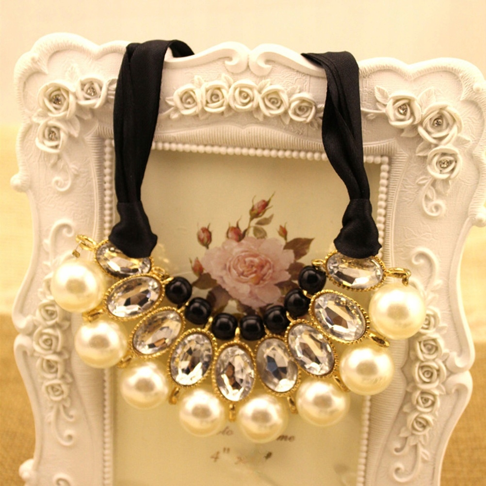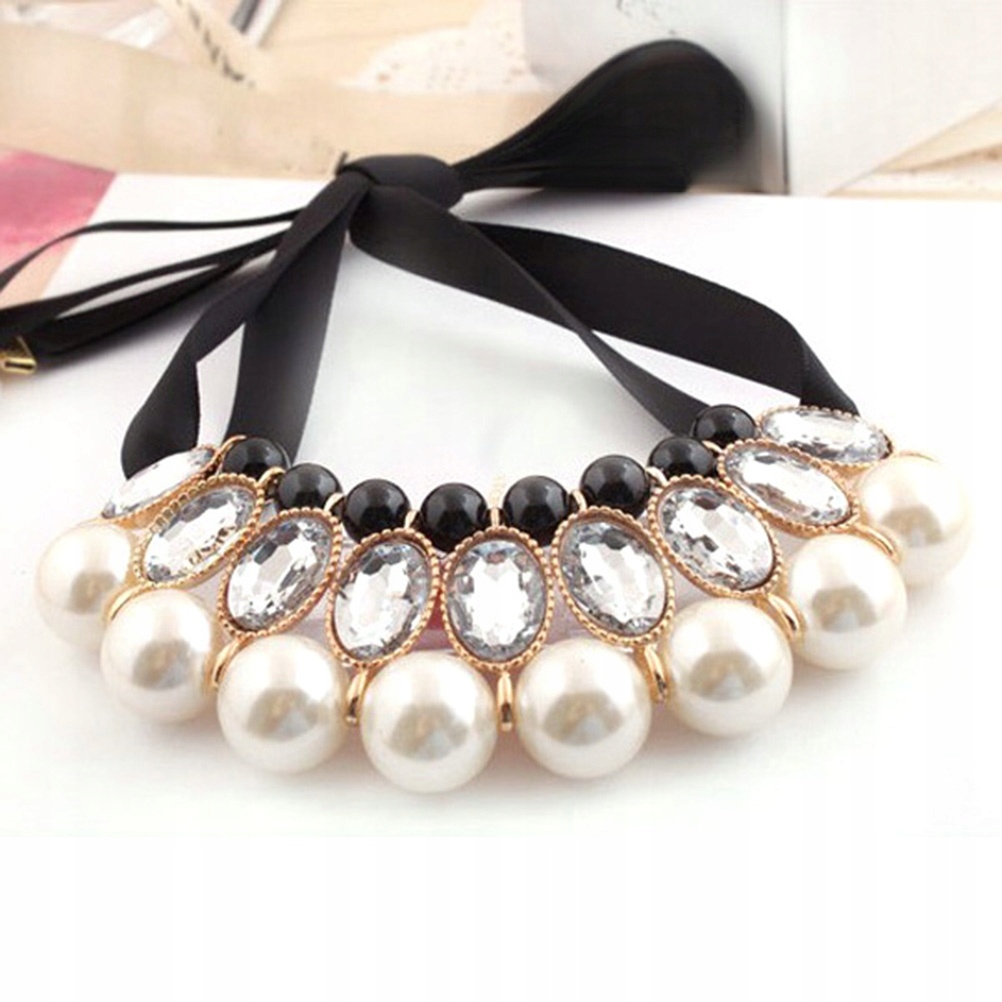 ✅1 * Элегантное колье-чокер для женщин и девочек с акриловыми драгоценными камнями и большим жемчугом на ленте (белое)