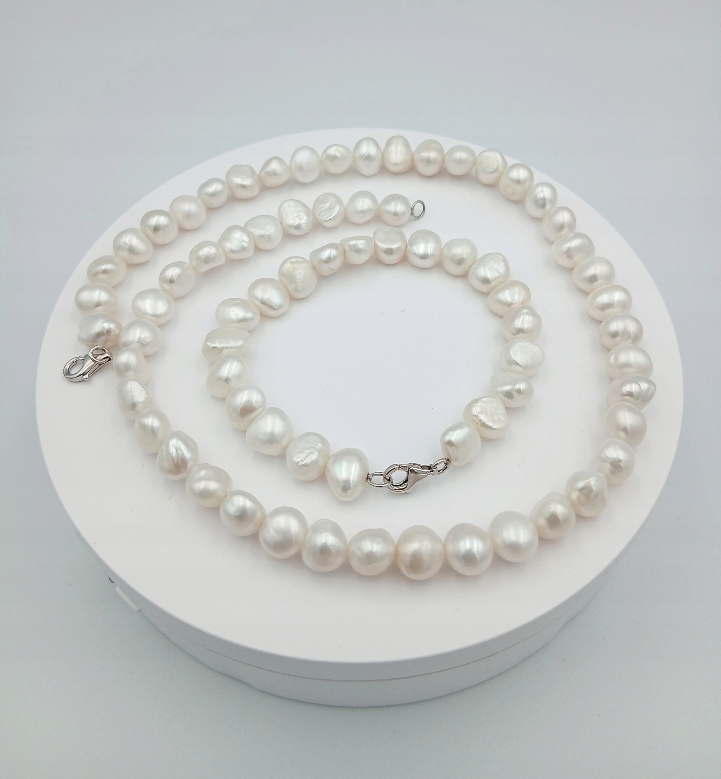 Ожерелье с браслетом из натурального пресноводного жемчуга серебряного P925