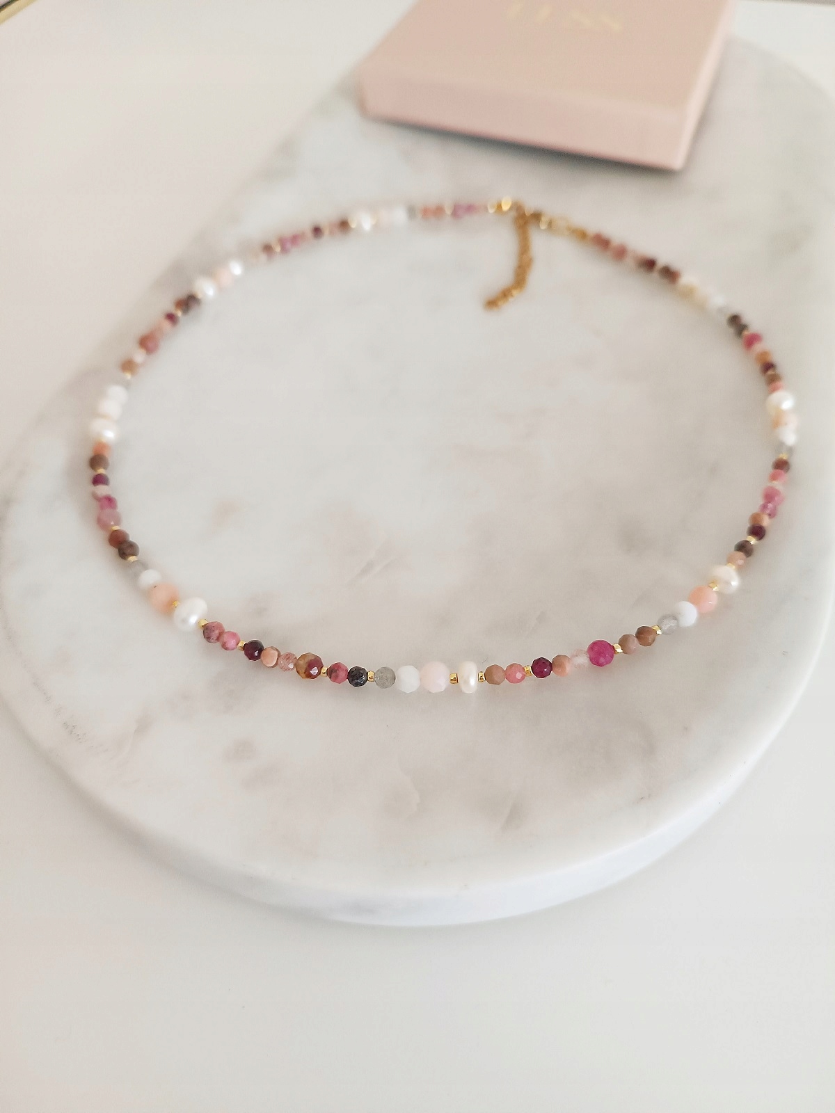 Намисто з камінням Перлина Турмалін Опал Місячний камінь Родоніт