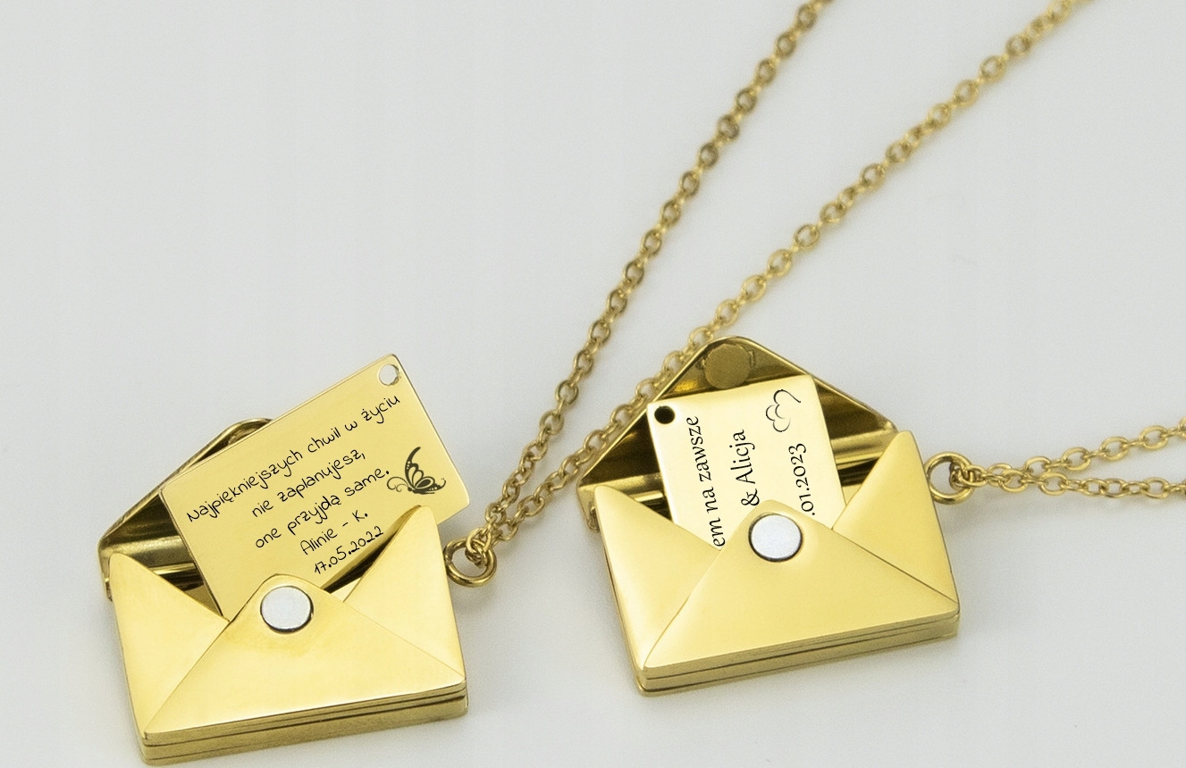 ✅ Элегантное ожерелье в виде конверта с вашей индивидуальной посвященностью, сделанным из стали самого высокого качества, покрытого слоем Реал 14 карата золота.