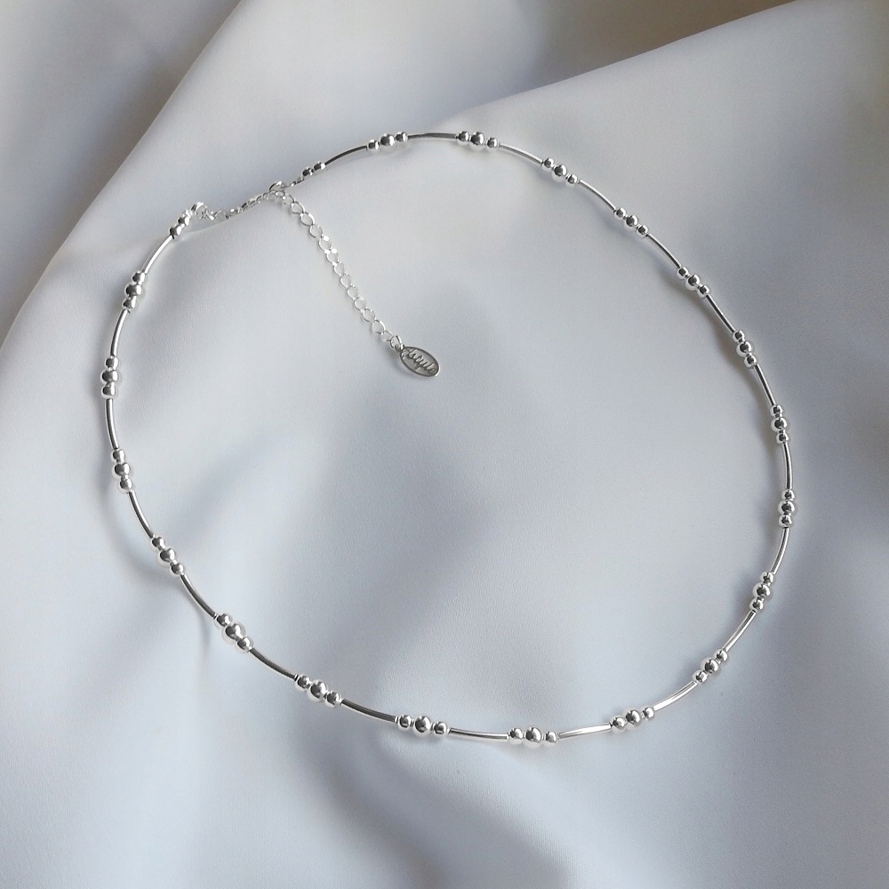 Авторское ожерелье, Серебряные испытания 925 - шары. Сделано на стальной линии шариков и трубок. Ожерелье завершено с расширением с меткой. Выберите из доступных вариантов: позолота, розовая позолота, Rhodiumborn. Позолоченные украшения позолочены с двойным слоем 24-каратного золота и украшениями по родиям с двойным слоем семьи. Благодаря этому позолота и родиум более долговечны. Тень украшений на картинах может немного отличаться от реальности. Все продукты имеют знак производителя и тест серебра.